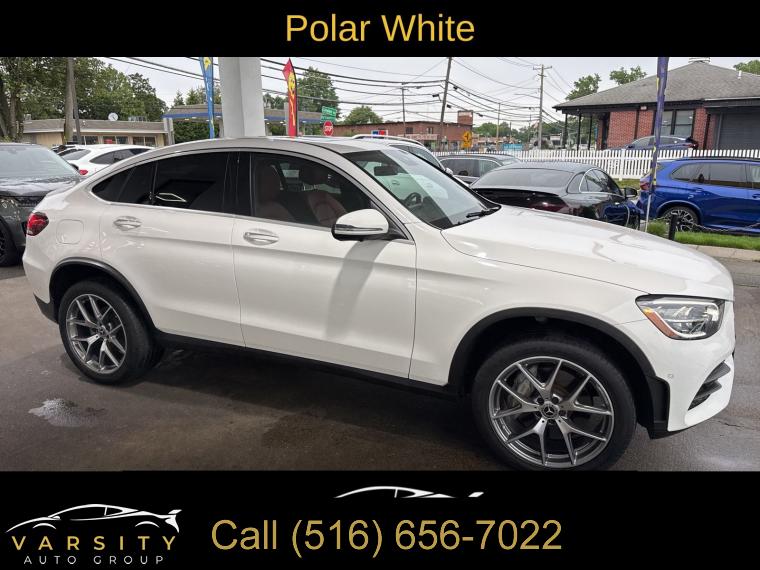 The Price you See, is the Price You Pay!!!, 2022 Mercedes-Benz GLC 300 Coupe 4MATIC, Polar White, Cranberry Red/Black w/Leather Upholstery, AMG Line, Clean CARFAX, 3.27 Axle Ratio, 4-Way Lumbar Support, 4-Wheel Disc Brakes, 6 Speakers, ABS brakes, Air Conditioning, Alloy wheels, AM/FM radio: SiriusXM, AMG® Line, AMG® Line Body Styling, AMG® Line Exterior, AMG® Line Floor Mats, AMG® Line Interior, Apple CarPlay®/Android Auto®, Auto High-beam Headlights, Auto tilt-away steering wheel, Auto-dimming door mirrors, Auto-dimming Rear-View mirror, Automatic temperature control, Brake assist, Bumpers: body-color, Child-Seat-Sensing Airbag, Delay-off headlights, Driver door bin, Driver vanity mirror, Dual front impact airbags, Dual front side impact airbags, Electronic Stability Control, Emergency communication system: eCall Emergency System, Four wheel independent suspension, Front anti-roll bar, Front Bucket Seats, Front Center Armrest, Front dual zone A/C, Front reading lights, Fully automatic headlights, Garage door transmitter: HomeLink, Genuine wood dashboard insert, Heated door mirrors, Heated Front Bucket Seats, Heated front seats, Illuminated entry, Knee airbag, Leather steering wheel, Low tire pressure warning, MB-Tex Upholstery, Memory seat, Occupant sensing airbag, Outside temperature display, Overhead airbag, Overhead console, Panic alarm, Passenger door bin, Passenger vanity mirror, Perforated Brake Discs, Power door mirrors, Power driver seat, Power Front Seats w/Driver Memory, Power Liftgate, Power moonroof, Power passenger seat, Power steering, Power windows, Premium audio system: MBUX, Radio data system, Radio: AM/FM/HD, Rain sensing wipers, Rear anti-roll bar, Rear fog lights, Rear reading lights, Rear seat center armrest, Rear window defroster, Remote keyless entry, Security system, SiriusXM Satellite Radio, Speed control, Speed-sensing steering, Split folding rear seat, Steering wheel memory, Steering wheel mounted audio controls, Tachometer, Telescoping steering wheel, Tilt steering wheel, Traction control, Trip computer, Turn signal indicator mirrors, Variably intermittent wipers, Wheels: 8J x 19" 5-Spoke w/Grey Accents. Polar White 2022 Mercedes-Benz GLC 300 Coupe 4MATIC® 4MATIC® 9-Speed Automatic I4 Odometer is 16887 miles below market average! 21/27 City/Highway MPG