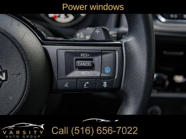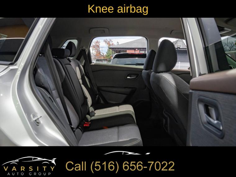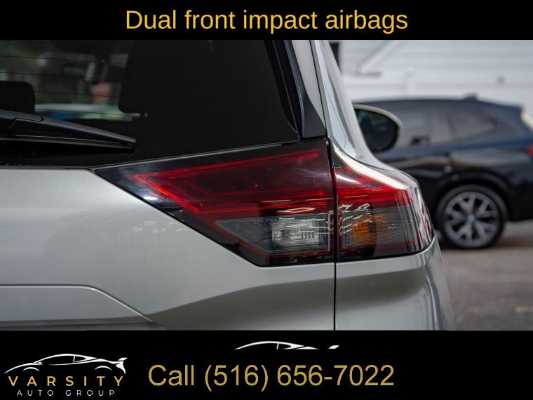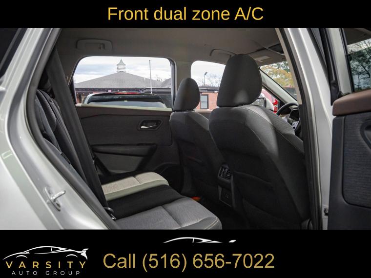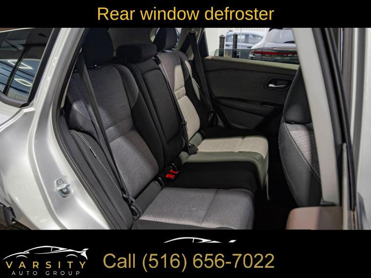 6 Speakers, AM/FM Radio, AM/FM radio: SiriusXM, Radio data system, Air Conditioning, Automatic temperature control, Front dual zone A/C, Rear window defroster, Power driver seat, Power steering, Power windows, Remote keyless entry, Steering wheel mounted audio controls, Four wheel independent suspension, Traction control, 4-Wheel Disc Brakes, ABS brakes, Dual front impact airbags, Dual front side impact airbags, Emergency communication system: NissanConnect Services, Front anti-roll bar, Knee airbag, Low tire pressure warning, Occupant sensing airbag, Overhead airbag, Rear anti-roll bar, Rear side impact airbag, Chrome Rear Bumper Protector, Brake assist, Electronic Stability Control, Rear Parking Sensors, Auto High-beam Headlights, Delay-off headlights, Fully automatic headlights, First Aid Kit, Panic alarm, Security system, Speed control, Black Splash Guards (Set of 4), Bumpers: body-color, Heated door mirrors, Power door mirrors, Spoiler, Turn signal indicator mirrors, Cloth Seat Trim, Driver door bin, Driver vanity mirror, Floor Mats w/1-Piece Cargo Area Protector, Front reading lights, Illuminated entry, NissanConnect featuring Apple CarPlay and Android Auto, Outside temperature display, Overhead console, Passenger vanity mirror, Rear seat center armrest, Tachometer, Telescoping steering wheel, Tilt steering wheel, Trip computer, Front Bucket Seats, Front Center Armrest, Split folding rear seat, Passenger door bin, 18" Aluminum Alloy Wheels, Alloy wheels, Rear window wiper, Speed-Sensitive Wipers, Variably intermittent wipers, 5.604 Axle Ratio, The Price you See, is the Price You Pay!!!, Nissan Rogue SV, Brilliant Silver Metallic, One Owner, Clean CARFAX, Low Miles