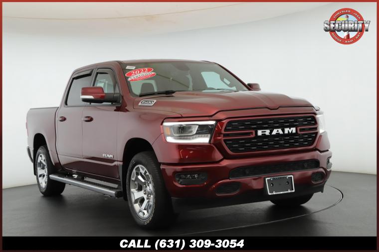 • This 2022 Ram 1500 Big Horn Crew Cab is a certified preowned vehicle with the delmonico red pearl coat exterior and black cloth seats. This highlights the Uconnect 5 NAV with 8.4 inch display, apple carplay/android auto, parkview rear backup camera, technology group, premium lighting group, sport appearance package, big horn level 2 equipment group, 5.7L V8 hemi engine, 8 speed automatic transmission, 20 inch aluminum chrome clad wheels, and much more! COME GET SOME at Security Dodge Long Island's top rated car dealer!