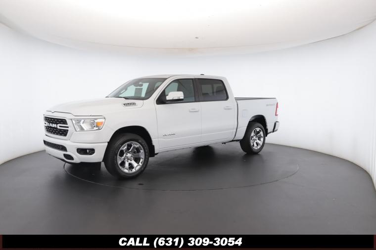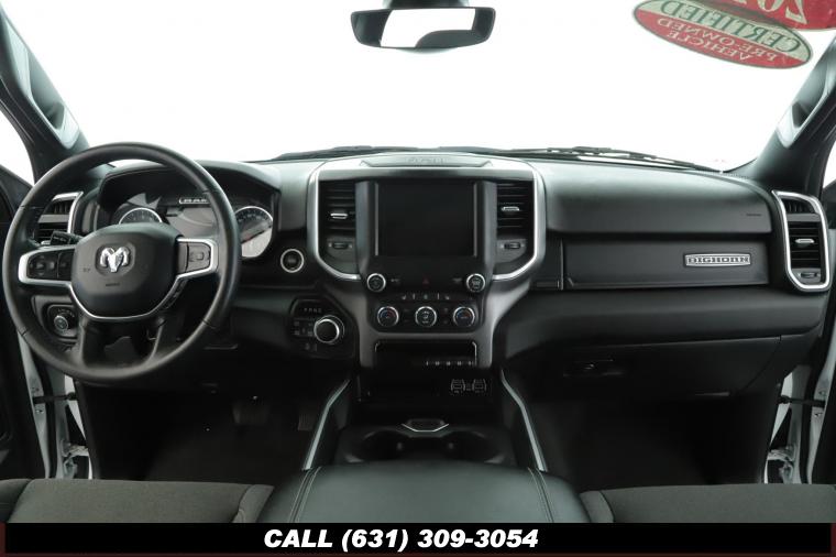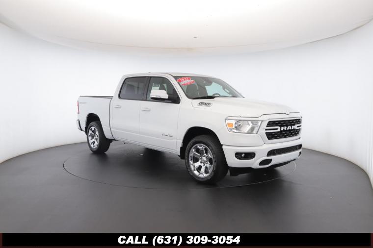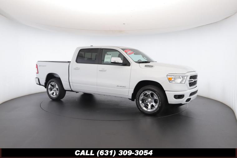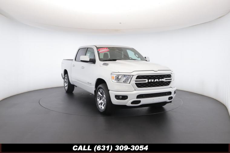 • This 2022 Ram 1500 Big Horn Crew Cab is a certified preowned vehicle with the bright white clear coat exterior and black cloth seats. This highlights the Uconnect 5 with 8.4 inch display, apple carplay/android auto, parkview rear backup camera, sport appearance package, big horn level 2 equipment group, dual pane panoramic sunroof, 5.7L V8 hemi engine, 8 speed automatic transmission, 20 inch aluminum chrome clad wheels, and much more!