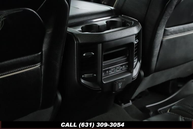 (Red) Edition, 10 Speakers, 3.21 Rear Axle Ratio, 4 Way Front Headrests, 4-Wheel Disc Brakes, 48V Belt Starter Generator, ABS brakes, Accent Color Premium Power Mirrors, Active Noise Control System, Adaptive Cruise Control w/Stop & Go, Adjustable Pedals, Air Conditioning, Alloy wheels, AM/FM radio: SiriusXM with 360L, Apple CarPlay/Android Auto, Audio memory, Auto High-beam Headlights, Auto-dimming door mirrors, Auto-Dimming Exterior Driver Mirror, Auto-Dimming Exterior Passenger Mirror, Auto-dimming Rear-View mirror, Auto-leveling suspension, Automatic temperature control, Bedliner, Black Day Light Opening Moldings, Black Exterior Truck Badging, Black Grille Surround Texture 7 Black, Black Headlamp Bezels, Black Painted Exterior Mirrors Caps, Body Color Door Handles, Body Color Front Bumper, Body Color Rear Bumper w/Step Pads, Bodyside moldings, Brake Assist, Bucket Seats, Bumpers: chrome, Chrome Exterior Mirrors, Compass, Convex Wide-Angle Mirror Insert, Delay-off headlights, Digital Rearview Mirror, Dome Dual LED Reading Lamp, Driver door bin, Driver Seat Memory, Driver Vanity Mirror, Dual Exhaust w/Black Tips, Dual front impact airbags, Dual front side impact airbags, Dual Rear Exhaust w/Bright Tips, Dual-Pane Panoramic Sunroof, Electronic Stability Control, Exterior Mirrors Courtesy Lamps, Exterior Mirrors w/Heating Element, Exterior Mirrors w/Memory, Exterior Mirrors w/Supplemental Signals, Front anti-roll bar, Front Bucket Seats, Front Center Armrest w/Storage, Front dual zone A/C, Front fog lights, Front License Plate Bracket, Front reading lights, Front Seat Back Map Pockets, Front wheel independent suspension, Full Length Premium Floor Console, Fully automatic headlights, Garage door transmitter, Genuine wood console insert, Genuine wood dashboard insert, Genuine wood door panel insert, harman/kardon 19 Speaker Premium Sound, Heads-Up Display, Heated door mirrors, Heated Front Seats, Heated rear seats, Heated Second Row Seats, Heated Steering Wheel, Heavy-Duty Engine Cooling, HEMI Badge, Illuminated entry, Lane Keep Assist, Leather Steering Wheel, LED CHMSL Lamp, LED Dome/Reading Lamp, Limited Level 1 Equipment Group, Low tire pressure warning, Memory seat, Navigation System, Occupant sensing airbag, Outside temperature display, Overhead airbag, Overhead console, Panic alarm, Parallel & Perp Park Assist w/Stop, ParkView Rear Back-Up Camera, Passenger door bin, Passenger Vanity Mirror, Pedal memory, Pedestrian Emergency Braking, Power 4-Way Driver Lumbar Adjust, Power 4-Way Passenger Lumbar Adjust, Power 8-Way Driver & Passenger Seats, Power door mirrors, Power Driver Seat, Power Passenger Seat, Power Steering, Power Windows, Power-Folding Mirrors, Premium Leather Trimmed Bucket Seats, Quick Order Package 25M Limited, Radio data system, Radio: Uconnect 5 Nav w/12.0 Display, Rain Sensing Wipers, RAM Grille Badge - Red, RAM Red Door Badges, Rear 60/40 Folding Split Recline Seat, Rear anti-roll bar, Rear seat center armrest, Rear step bumper, Rear window defroster, Red Edition Console Badge, Remote keyless entry, Security System, Speed control, Split folding rear seat, Sport Performance Hood, Steering wheel mounted audio controls, Surround View Camera System, Tachometer, Tailgate Ajar Warning Lamp, Telescoping steering wheel, Tilt steering wheel, Tow Hooks, Traction Control, Trailer Brake Control, Tri-Fold Tonneau Cover, Trip Computer, Turn signal indicator mirrors, Variably intermittent wipers, Ventilated Front Seats, Ventilated Rear Seats, Voltmeter, Wheels: 20 x 9 Aluminum Painted/Polished, Wheels: 22 x 9 Black Aluminum