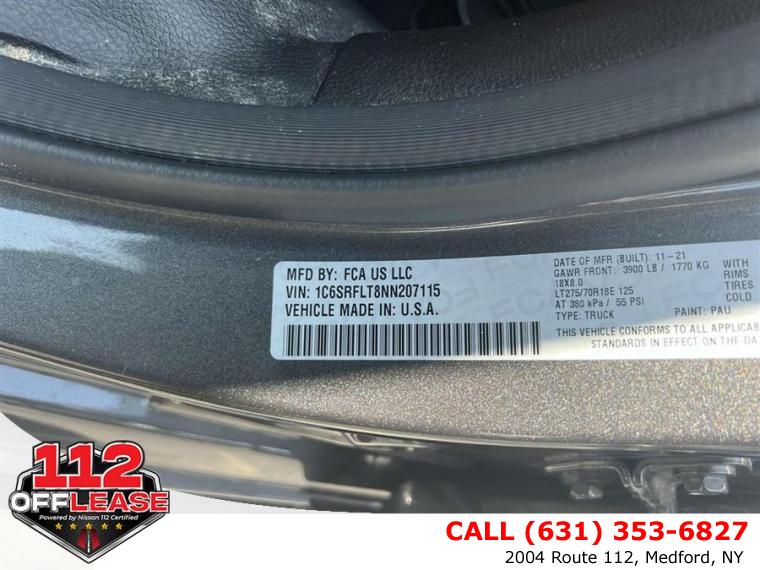 For more information on this 2022 RAM 1500, please call 112 Off Lease at (631) 353-6827 or with the contact form on this page. This vehicle's vin number is 1C6SRFLT8NN207115 and is recorded as being in stock at 112 Off Lease at 2004 Route 112 in Medford. See all cars from this dealership.