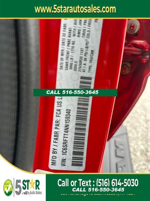 For more information on this 2022 RAM 1500, please call 5 Star Auto Sales at (516) 550-3645 or with the contact form on this page. This vehicle's vin number is 1C6SRFTT4NN159340 and is recorded as being in stock at 5 Star Auto Sales at 680 Newbridge Rd in East Meadow. See all cars from this dealership.