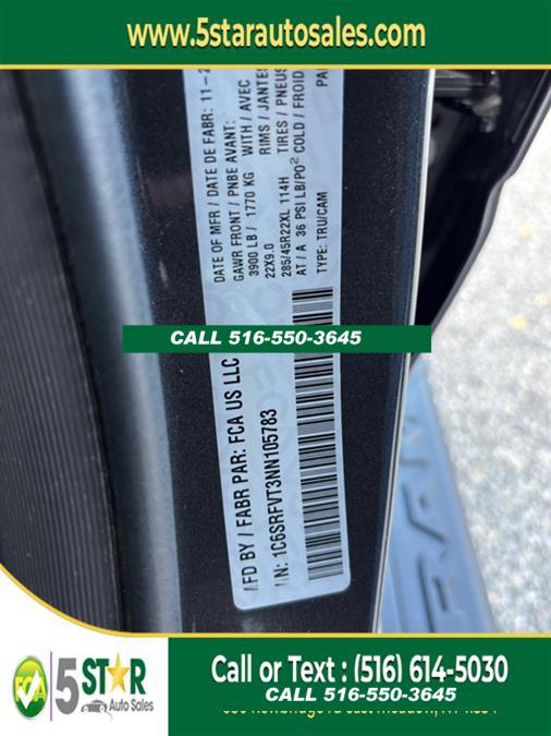 For more information on this 2022 RAM 1500, please call 5 Star Auto Sales at (516) 550-3645 or with the contact form on this page. This vehicle's vin number is 1C6SRFVT3NN105783 and is recorded as being in stock at 5 Star Auto Sales at 680 Newbridge Rd in East Meadow. See all cars from this dealership.