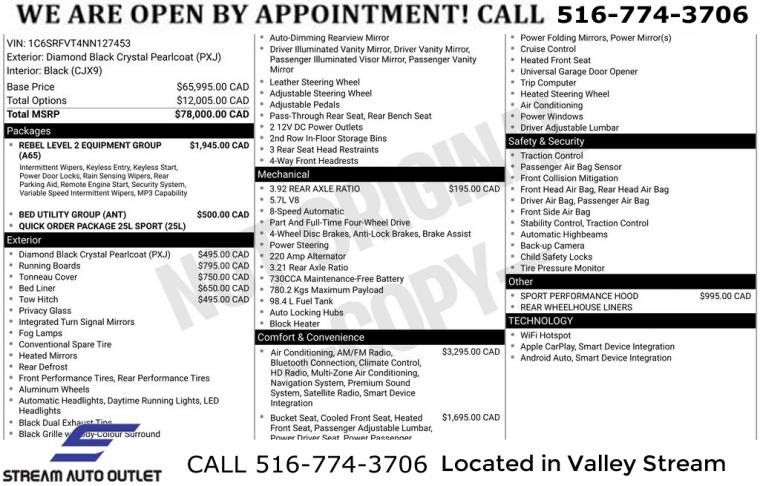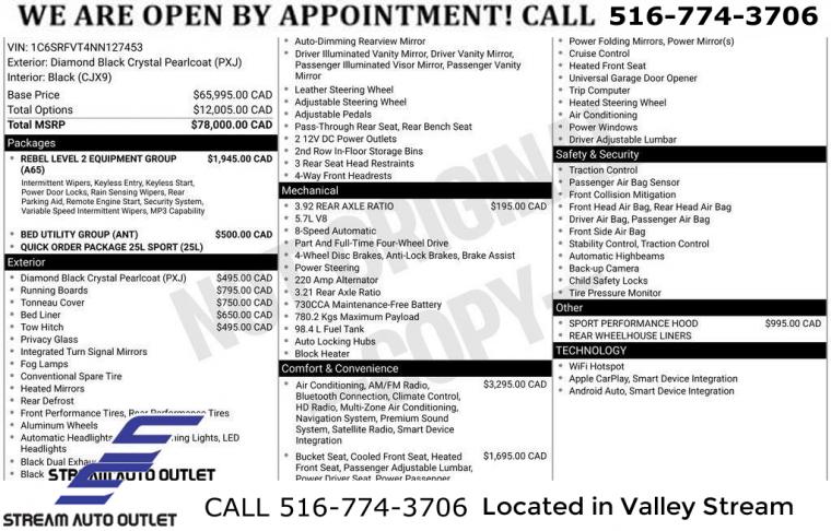 For more information on this 2022 RAM 1500, please call Stream Auto Outlet Valley Stream at (516) 774-3706 or with the contact form on this page. This vehicle's vin number is 1C6SRFVT4NN127453 and is recorded as being in stock at Stream Auto Outlet Valley Stream at 324 W Merrick Rd in Valley Stream. See all cars from this dealership.