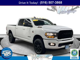 Cummins turbodiesel power, 4WD traction, and low miles for its age set this 2022 Ram 2500 4D Crew Cab apart for workdays and weekends alike. Finished in Bright White Clearcoat with a Black Cloth interior, it balances heavy-duty capability with everyday comfort. The ride is confident and composed, while premium cloth seating, dual-zone automatic temperature control, Active Noise Control System, and thoughtful storage throughout the cabin make long stints behind the wheel easier. Big Horn presence with the Night Edition look gives it a bold, modern stance without sacrificing practicality.Technology that works as hard as you do starts with the Uconnect 5 system and an 8.4 inch multimedia display, plus Apple CarPlay and Android Auto to keep your apps, maps, and calls in easy reach. Enjoy crisp audio from 9 Alpine speakers with subwoofer, Bluetooth handsfree phone and audio, integrated voice command, 4G LTE Wi-Fi Hot Spot, SiriusXM, and steering wheel media controls. ParkView Rear Back-Up Camera and ParkSense Front/Rear Park Assist System help you maneuver with confidence. Cold-weather-ready gear includes heated front seats, a heated steering wheel, remote start, an engine block heater, and the MOPAR Winter Front Grille Cover. Everyday convenience is boosted by power adjustable pedals, an auto-dimming rear-view mirror, universal garage door opener, rear window defroster, and a rear power sliding window. In the bed you get LED lighting, a MOPAR spray-in bedliner, a deployable bed step, rear wheelhouse liners, and a dampened tailgate. Utility runs deep with multiple 115V power outlets including an exterior 115V AC outlet, a 400W inverter, I/P-mounted auxiliary switches, dash pass-thru wire circuits, and Selectable Tire Fill Alert. Night Edition black exterior badging and trim pair with painted bumpers and a body color grille surround for a clean, purposeful look, and you get Clearance Lamps, LED tail lamps, fog lamps, tow hooks, and a Transfer Case Skid Plate Shield for added readiness & more.Underneath, the 3.73 Axle Ratio and Anti-Spin Differential Rear Axle deliver dependable traction when conditions turn challenging. The Snow Chief Group, Protection Group, Bed Utility Group, Level C Equipment Group, and Quick Order Package 2HZ Big Horn round out a smart build geared toward confident control and long-term durability.With just 15,457 miles, this Ram 2500 has been lightly driven, offering the kind of long-life potential and peace of mind shoppers want in a heavy-duty truck.VIP+ ProgramEnjoy added value with our VIP+ Program. You get Unlimited Oil and Filter changes for 1 year, then included with every factory maintenance thereafter. We also provide Complimentary NYS Inspections, Complimentary Loaner Cars, and Complimentary 24/7 Rescue and Towing. These benefits are For Life and Transferable, amplifying confidence and convenience for as long as you own your vehicle.More About UsEvery vehicle on our lot is hand selected for quality and long-term reliability, then fully reconditioned prior to sale so you can purchase with confidence. Our certified vehicles meet strict standards, including brake life no less than 50 percent, to help ensure safety and value from day one. We emphasize trust, preparation, and peace of mind in every step. Proud member of the VIP Auto Group serving the local community since 1957, We Will Satisfy You!If you are looking for a used car on Long Island or shopping for a used truck in New York, this Ram 2500 brings commuter-friendly comfort, winter confidence, and heavy-duty reliability together. The 4WD system, block heater, and thoughtful cold-weather groups are built for the Northeast, while the efficient cabin layout and advanced connectivity keep daily driving simple. It is a smart choice for long-term value across NY, whether you are towing, hauling, or just cruising to the jobsite.Shoppers across New York can call now, schedule a test drive, or learn more at WestburyJeep.com, where you can view up-to-date inventory and current pricing. This description and feature list are intended as a general overview and may vary by vehicle. Please confirm exact equipment and details with our team.