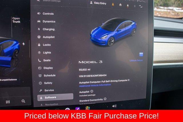 ABS brakes, Brake assist, Electronic Stability Control, Exterior Parking Camera Rear, Front dual zone A/C, Fully automatic headlights, Heated front seats, Heated rear seats, Lane Departure Warning System, Navigation System, Power driver seat, Power windows, Radio: Upgraded Audio System, Speed-sensing steering, Steering wheel mounted A/C controls. Priced below KBB Fair Purchase Price! Clean CARFAX. 138/126 City/Highway MPG2022 Tesla Model 3 Base Blue RWD 1-Speed Automatic Electric MotorSpecial pricing ad/promotion is available to customers who reference such pricing and present the ad at the time of sale otherwise store list price applies. Buyer is responsible to verify options/packages. Any error voids the ad. Certified Pre-Owned program available. Same-day delivery In-stock units only. Dealer-installed accessories are extra. Dealer is not responsible for typographical errors. Every vehicle in inventory is equipped with LoJack at an additional cost. The special price expires at the midnight of the publication date. For return & exchange policy visit the website for details. All Prices will be honored as cash prices. Prices do not include the following fees: Doc Fee, tax, tags, DMV fees. Pre-installed LoJack, and Pre-Certification (vary between vehicles) Please visit or call the dealership for complete details.
