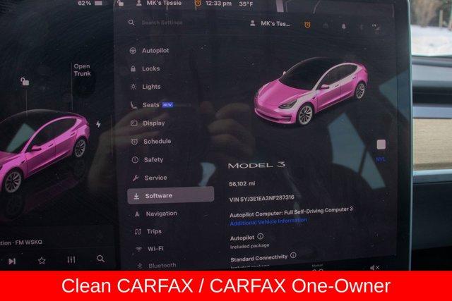4-Wheel Disc Brakes, ABS brakes, Air Conditioning, Brake assist, Exterior Parking Camera Rear, Four wheel independent suspension, Front dual zone A/C, Fully automatic headlights, Heated front seats, Heated rear seats, Lane Departure Warning System, Memory seat, Navigation System, Power door mirrors, Power driver seat, Radio: Upgraded Audio System, Steering wheel mounted A/C controls. Priced below KBB Fair Purchase Price! Clean CARFAX. CARFAX One-Owner. 138/126 City/Highway MPG2022 Tesla Model 3 Base White RWD 1-Speed Automatic Electric MotorSpecial pricing ad/promotion is available to customers who reference such pricing and present the ad at the time of sale otherwise store list price applies. Buyer is responsible to verify options/packages. Any error voids the ad. Certified Pre-Owned program available. Same-day delivery In-stock units only. Dealer-installed accessories are extra. Dealer is not responsible for typographical errors. Every vehicle in inventory is equipped with LoJack at an additional cost. The special price expires at the midnight of the publication date. For return & exchange policy visit the website for details. All Prices will be honored as cash prices. Prices do not include the following fees: Doc Fee, tax, tags, DMV fees. Pre-installed LoJack, and Pre-Certification (vary between vehicles) Please visit or call the dealership for complete details.