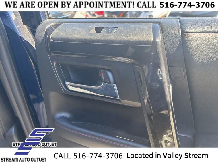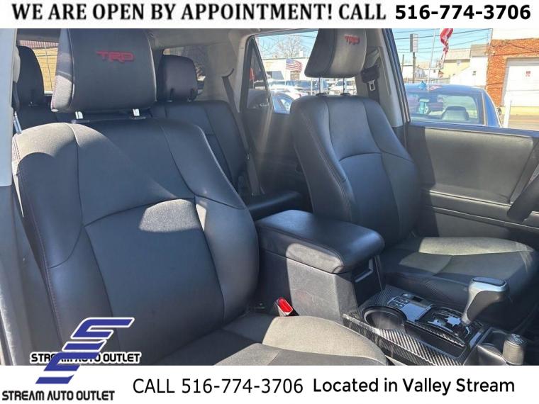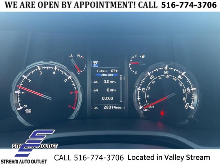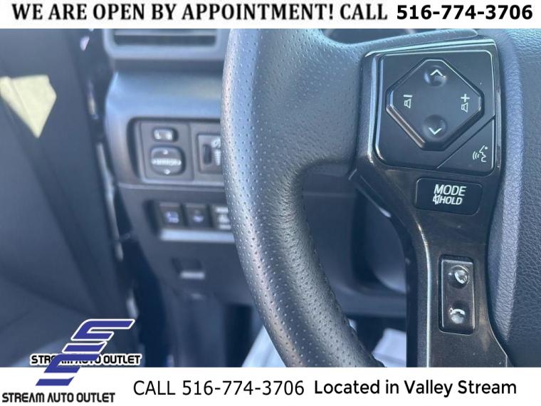 Off Road Package, TRD Black Wheel Package (PPO) (TMS), 8 Speakers, AM/FM radio: SiriusXM, Radio: Premium Audio w/Dynamic Navigation, Air Conditioning, Rear window defroster, Garage Door Opener, Power driver seat, Power steering, Power windows, Remote keyless entry, Steering wheel mounted audio controls, Speed-sensing steering, Traction control, 4-Wheel Disc Brakes, ABS brakes, Anti-whiplash front head restraints, Dual front impact airbags, Dual front side impact airbags, Emergency communication system: Safety Connect with 1-year trial, Front anti-roll bar, Front wheel independent suspension, Knee airbag, Low tire pressure warning, Occupant sensing airbag, Overhead airbag, Rear anti-roll bar, Brake assist, Electronic Stability Control, Exterior Parking Camera Rear, Auto High-beam Headlights, Front fog lights, Panic alarm, Security system, Speed control, Bumpers: body-color, Heated door mirrors, Outside Rear View Mirror, Power door mirrors, Roof rack: rails only, Spoiler, Turn signal indicator mirrors, Apple CarPlay/Android Auto, Auto-dimming Rear-View mirror, Blind Spot Monitor (BSM), Compass, Driver door bin, Driver vanity mirror, Front reading lights, Garage door transmitter: HomeLink, Illuminated entry, Leather Shift Knob, Outside temperature display, Overhead console, Passenger vanity mirror, Rear seat center armrest, Tachometer, Telescoping steering wheel, Tilt steering wheel, Trip computer, Front Bucket Seats, Front Center Armrest, Heated Front Bucket Seats, Heated front seats, Power passenger seat, SofTex Seat Trim, Split folding rear seat, Black Roof Rails, Passenger door bin, Alloy wheels, Wheels: 17" Unique 7-Spoke Off-Road Alloy, Rear window wiper, Variably intermittent wipers, 3.727 Axle Ratio, * NYS INSPECTION INCLUDED *, * FULL INTERIOR / EXTERIOR DETAIL *, * BLUETOOTH *, * LIMITED NYS LEMON LAW WARRANTY INCLUDED *, *FRESH OIL CHANGE *, * 150 MULTI POINT INSPECTION *