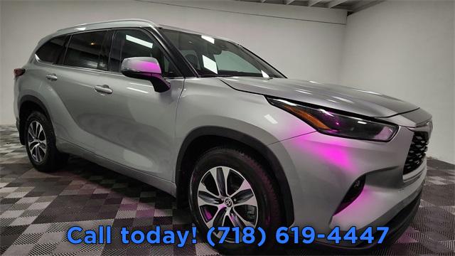 CARFAX One-Owner. 2022 Toyota Highlander XLE AWD, AM/FM radio: SiriusXM, Auto High-beam Headlights, Automatic temperature control, Exterior Parking Camera Rear, Front dual zone A/C, Front fog lights, Fully automatic headlights, Power Liftgate, Power moonroof, Rear air conditioning, Remote keyless entry, Steering wheel mounted audio controls.