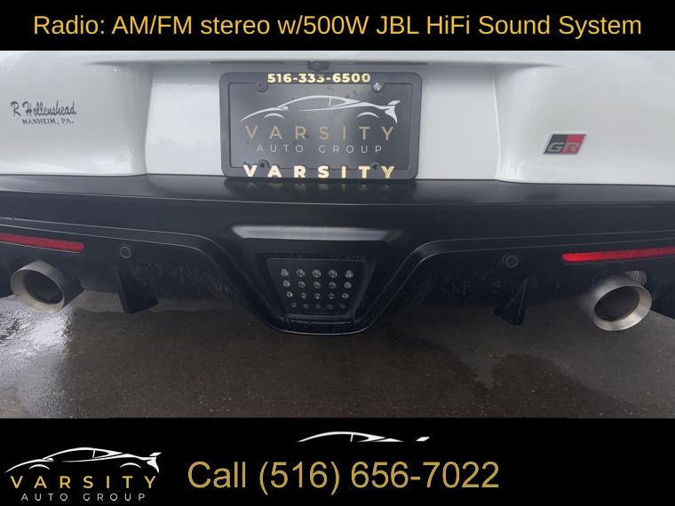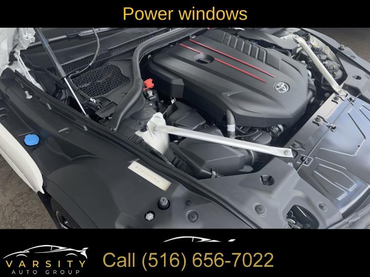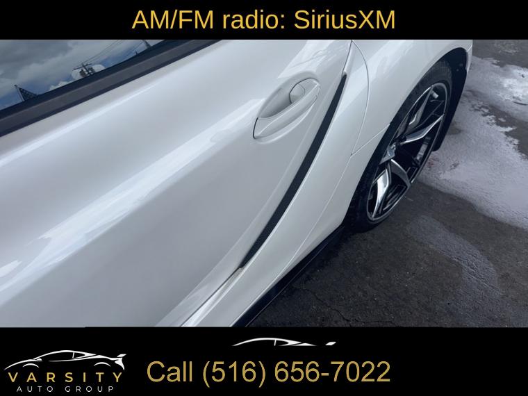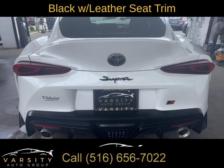 Premium Package, AM/FM radio: SiriusXM, Radio data system, Radio: AM/FM stereo w/500W JBL HiFi Sound System, Air Conditioning, Automatic temperature control, Front dual zone A/C, Rear window defroster, Memory seat, Power driver seat, Power steering, Power windows, Remote keyless entry, Steering wheel mounted audio controls, Adaptive suspension, Four wheel independent suspension, Speed-sensing steering, Traction control, 4-Wheel Disc Brakes, ABS brakes, Child-Seat-Sensing Airbag, Dual front impact airbags, Dual front side impact airbags, Front anti-roll bar, Knee airbag, Low tire pressure warning, Occupant sensing airbag, Overhead airbag, Rear anti-roll bar, Red Brake Calipers, Brake assist, Electronic Stability Control, Exterior Parking Camera Rear, Auto High-beam Headlights, Delay-off headlights, Front fog lights, Fully automatic headlights, Panic alarm, Security system, Full-Speed Dynamic Radar Cruise Control, Speed control, Auto-dimming door mirrors, Bumpers: body-color, Carbon Fiber Mirror Caps (TMS), Heated door mirrors, Power door mirrors, Turn signal indicator mirrors, Auto-dimming Rear-View mirror, Blind Spot Monitor (BSM), Carpet Cargo Mat (TMS), Driver door bin, Driver vanity mirror, Front reading lights, Full Color Head-Up Display (HUD), Garage door transmitter: HomeLink, Illuminated entry, Leather Shift Knob, Leather steering wheel, Outside temperature display, Parking Sensors w/Emergency Braking Function, Passenger vanity mirror, Qi-Compatible Wireless Charging Tray, Rear Cross Traffic Alert (RCTA), Tachometer, Telescoping steering wheel, Tilt steering wheel, Trip computer, Front Bucket Seats, Front Center Armrest, Heated front seats, Power passenger seat, Passenger door bin, Alloy wheels, Wheels: 19" Forged Aluminum w/Dual-Tone Finish, Rain sensing wipers, Speed-Sensitive Wipers, Variably intermittent wipers, The Price you See, is the Price You Pay!!!, 2022 Toyota Supra 3.0, Absolute Zero, Black w/Leather Seat Trim, 3.0L I6 Turbocharged, 8-Speed Automatic