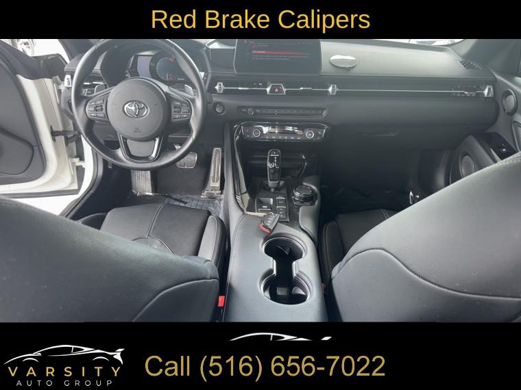 The Price you See, is the Price You Pay!!!, 2022 Toyota Supra 3.0, Absolute Zero, Black w/Leather Seat Trim, 3.0L I6 Turbocharged, 8-Speed Automatic, Premium Package, 4-Wheel Disc Brakes, ABS brakes, Adaptive suspension, Air Conditioning, Alloy wheels, AM/FM radio: SiriusXM, Auto High-beam Headlights, Auto-dimming door mirrors, Auto-dimming Rear-View mirror, Automatic temperature control, Blind Spot Monitor (BSM), Brake assist, Bumpers: body-color, Carbon Fiber Mirror Caps (TMS), Carpet Cargo Mat (TMS), Child-Seat-Sensing Airbag, Delay-off headlights, Driver door bin, Driver vanity mirror, Dual front impact airbags, Dual front side impact airbags, Electronic Stability Control, Exterior Parking Camera Rear, Four wheel independent suspension, Front anti-roll bar, Front Bucket Seats, Front Center Armrest, Front dual zone A/C, Front fog lights, Front reading lights, Full Color Head-Up Display (HUD), Full-Speed Dynamic Radar Cruise Control, Fully automatic headlights, Garage door transmitter: HomeLink, Heated door mirrors, Heated front seats, Illuminated entry, Knee airbag, Leather Shift Knob, Leather steering wheel, Low tire pressure warning, Memory seat, Occupant sensing airbag, Outside temperature display, Overhead airbag, Panic alarm, Parking Sensors w/Emergency Braking Function, Passenger door bin, Passenger vanity mirror, Power door mirrors, Power driver seat, Power passenger seat, Power steering, Power windows, Premium Package, Qi-Compatible Wireless Charging Tray, Radio data system, Radio: AM/FM stereo w/500W JBL HiFi Sound System, Rain sensing wipers, Rear anti-roll bar, Rear Cross Traffic Alert (RCTA), Rear window defroster, Red Brake Calipers, Remote keyless entry, Security system, Speed control, Speed-sensing steering, Speed-Sensitive Wipers, Steering wheel mounted audio controls, Tachometer, Telescoping steering wheel, Tilt steering wheel, Traction control, Trip computer, Turn signal indicator mirrors, Variably intermittent wipers, Wheels: 19" Forged Aluminum w/Dual-Tone Finish. Absolute Zero 2022 Toyota Supra 3.0 RWD 8-Speed Automatic 3.0L I6 Turbocharged Odometer is 7295 miles below market average! 22/30 City/Highway MPG