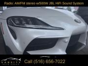 • The Price you See, is the Price You Pay!!!, 4-Wheel Disc Brakes, ABS brakes, Adaptive suspension, Air Conditioning, Alloy wheels, AM/FM radio: SiriusXM, Auto High-beam Headlights, Auto-dimming door mirrors, Auto-dimming Rear-View mirror, Automatic temperature control, Brake assist, Bumpers: body-color, Child-Seat-Sensing Airbag, Delay-off headlights, Driver door bin, Driver vanity mirror, Dual front impact airbags, Electronic Stability Control, Exterior Parking Camera Rear, Four wheel independent suspension, Front anti-roll bar, Front Bucket Seats, Front Center Armrest, Front dual zone A/C, Front fog lights, Front reading lights, Full Color Head-Up Display (HUD), Garage door transmitter: HomeLink, Heated door mirrors, Heated front seats, Illuminated entry, Knee airbag, Leather Shift Knob, Leather steering wheel, Low tire pressure warning, Memory seat, Occupant sensing airbag, Overhead airbag, Passenger door bin, Power door mirrors, Power driver seat, Power passenger seat, Power steering, Power windows, Premium Package, Qi-Compatible Wireless Charging Tray, Radio data system, Radio: AM/FM stereo w/500W JBL HiFi Sound System, Rain sensing wipers, Red Brake Calipers, Speed-sensing steering, Speed-Sensitive Wipers, Tachometer, Telescoping steering wheel, Tilt steering wheel, Traction control, Trip computer, Wheels: 19" Forged Aluminum w/Dual-Tone Finish. White 2022 Toyota Supra 3.0 RWD 8-Speed Automatic 3.0L I6 Turbocharged Odometer is 8811 miles below market average! 22/30 City/Highway MPG