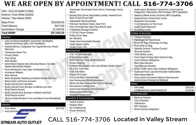 For more information on this 2022 Volkswagen Atlas Cross Sport, please call Stream Auto Outlet Valley Stream at (516) 774-3706 or with the contact form on this page. This vehicle's vin number is 1V2LC2CA4NC210562 and is recorded as being in stock at Stream Auto Outlet Valley Stream at 324 W Merrick Rd in Valley Stream. See all cars from this dealership.