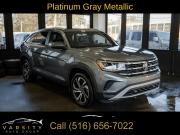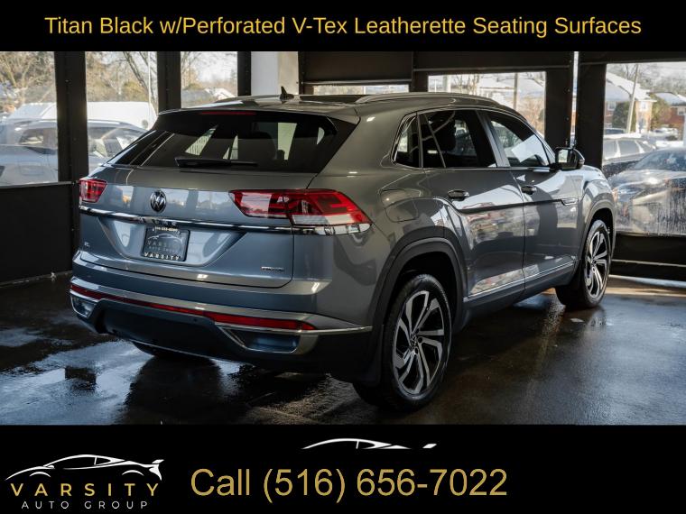 2022 Volkswagen Atlas Cross Sport 2.0T SEL, Platinum Gray Metallic, Titan Black w/Perforated V-Tex Leatherette Seating Surfaces, Clean CARFAX, 3.60 Axle Ratio, 4-Wheel Disc Brakes, 6 Speakers, ABS brakes, Air Conditioning, Alloy wheels, AM/FM radio: SiriusXM with 360L, Auto High-beam Headlights, Auto-dimming Rear-View mirror, Automatic temperature control, Brake assist, Bumpers: body-color, Compass, Delay-off headlights, Driver door bin, Driver vanity mirror, Dual front impact airbags, Dual front side impact airbags, Electronic Stability Control, Emergency communication system, Exterior Parking Camera Rear, First Aid Kit, Four wheel independent suspension, Frameless Auto-Dimming Rearview Mirror, Front anti-roll bar, Front Bucket Seats, Front Center Armrest, Front dual zone A/C, Front fog lights, Front reading lights, Fully automatic headlights, Heated Comfort Front Bucket Seats, Heated door mirrors, Heated front seats, Heated steering wheel, Heavy Duty Trunk Liner w/VW CarGo Blocks, Illuminated entry, Leather Shift Knob, Low tire pressure warning, Memory seat, Navigation System, Occupant sensing airbag, Outside temperature display, Overhead airbag, Overhead console, Panic alarm, Passenger door bin, Passenger vanity mirror, Perforated V-Tex Leatherette Seating Surfaces, Power door mirrors, Power driver seat, Power Liftgate, Power moonroof: Panoramic, Power passenger seat, Power steering, Power windows, Privacy Cover, Radio data system, Radio: MIB3 Discover Media w/8" Touchscreen Navigation, Rain sensing wipers, Rear anti-roll bar, Rear reading lights, Rear seat center armrest, Rear window defroster, Rear window wiper, Remote keyless entry, Roadside Assistance Kit, Roof rack: rails only, Rubber Mats (Set of 4), Rubber Mats Kit, Security system, Speed control, Speed-sensing steering, Split folding rear seat, Spoiler, Standard Suspension, Steering wheel mounted audio controls, Tachometer, Telescoping steering wheel, Tilt steering wheel, Traction control, Trip computer, Turn signal indicator mirrors, Variably intermittent wipers, VW Car-Net Safe & Secure 5-Year, VW Care, Wheels: 20" x 8J 5-Spoke 2-Tone Machined Alloy. Platinum Gray Metallic 2022 Volkswagen Atlas Cross Sport 2.0T SEL AWD 8-Speed Automatic with Tiptronic 2.0L TSI Odometer is 13153 miles below market average!
