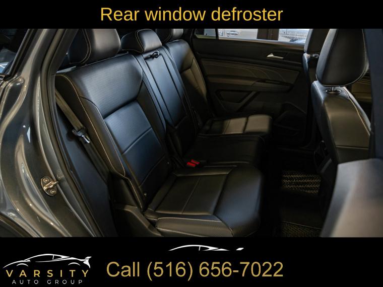 Navigation System, 6 Speakers, AM/FM radio: SiriusXM with 360L, Radio data system, Radio: MIB3 Discover Media w/8" Touchscreen Navigation, Air Conditioning, Automatic temperature control, Front dual zone A/C, Rear window defroster, Memory seat, Power driver seat, Power steering, Power windows, Remote keyless entry, Steering wheel mounted audio controls, Four wheel independent suspension, Speed-sensing steering, Standard Suspension, Traction control, 4-Wheel Disc Brakes, ABS brakes, Dual front impact airbags, Dual front side impact airbags, Emergency communication system, Front anti-roll bar, Low tire pressure warning, Occupant sensing airbag, Overhead airbag, Rear anti-roll bar, Power moonroof: Panoramic, Power Liftgate, Brake assist, Electronic Stability Control, Exterior Parking Camera Rear, Auto High-beam Headlights, Delay-off headlights, Front fog lights, Fully automatic headlights, First Aid Kit, Panic alarm, Security system, Speed control, Bumpers: body-color, Heated door mirrors, Power door mirrors, Roof rack: rails only, Spoiler, Turn signal indicator mirrors, Auto-dimming Rear-View mirror, Compass, Driver door bin, Driver vanity mirror, Frameless Auto-Dimming Rearview Mirror, Front reading lights, Heated Comfort Front Bucket Seats, Heated steering wheel, Heavy Duty Trunk Liner w/VW CarGo Blocks, Illuminated entry, Leather Shift Knob, Outside temperature display, Overhead console, Passenger vanity mirror, Rear reading lights, Rear seat center armrest, Roadside Assistance Kit, Rubber Mats (Set of 4), Rubber Mats Kit, Tachometer, Telescoping steering wheel, Tilt steering wheel, Trip computer, VW Car-Net Safe & Secure 5-Year, VW Care, Front Bucket Seats, Front Center Armrest, Heated front seats, Perforated V-Tex Leatherette Seating Surfaces, Power passenger seat, Split folding rear seat, Passenger door bin, Privacy Cover, Alloy wheels, Wheels: 20" x 8J 5-Spoke 2-Tone Machined Alloy, Rain sensing wipers, Rear window wiper, Variably intermittent wipers, 3.60 Axle Ratio, 2022 Volkswagen Atlas Cross Sport 2.0T SEL, Platinum Gray Metallic, Titan Black w/Perforated V-Tex Leatherette Seating Surfaces, Clean CARFAX