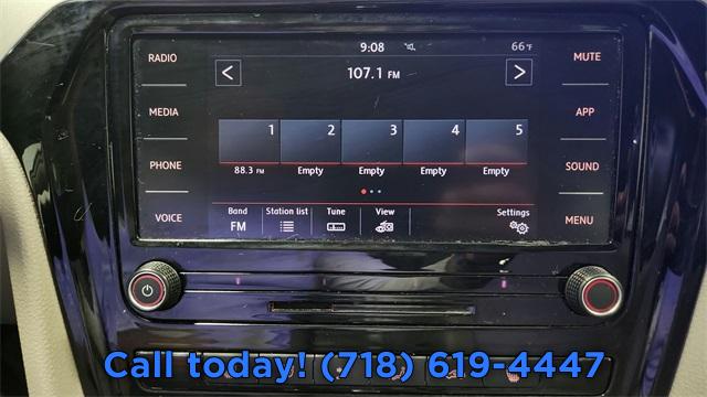 Wheels: 18" x 8J 5-Spoke 2-Tone Machined Alloy, Heated Front Comfort Seats, Perforated V-Tex Leatherette Seating Surfaces, Radio: Composition Media w/Touchscreen, VW Care, VW Car-Net Safe & Secure 3-Yr Prepaid Subscription, Roadside Assistance Kit, Monster Mats Rubber Mats Kit (Set of 4), 4-Wheel Disc Brakes, Active Blind Spot Monitor, Exterior Parking Camera Rear, AM/FM radio: SiriusXM, Auto-dimming Rear-View mirror, Front beverage holders, Variably intermittent wipers, Turn signal indicator mirrors, Trip computer, Traction control, Tilt steering wheel, Telescoping steering wheel, Steering wheel mounted audio controls, Split folding rear seat, Speed-sensing steering, Speed control, Remote keyless entry, Rear window defroster, Rear seat center armrest, Rear reading lights, Rear anti-roll bar, Rain sensing wipers, Radio data system, Power windows, Power steering, Power moonroof, Power driver seat, Power door mirrors, Passenger vanity mirror, Passenger door bin, Panic alarm, Overhead console, Overhead airbag, Outside temperature display, Occupant sensing airbag, Low tire pressure warning, Leather steering wheel, Illuminated entry, Heated front seats, Heated door mirrors, Fully automatic headlights, Front reading lights, Front dual zone A/C, Front anti-roll bar, Four wheel independent suspension, Emergency communication system, Dual front side impact airbags, Dual front impact airbags, Driver vanity mirror, Driver door bin, Delay-off headlights, Bumpers: body-color, Brake assist, Automatic temperature control, Alloy wheels, ABS brakes, Tachometer, Leather Shift Knob, Front Center Armrest, Front Bucket Seats, Electronic Stability Control, Air Conditioning, 6 Speakers