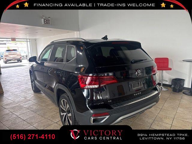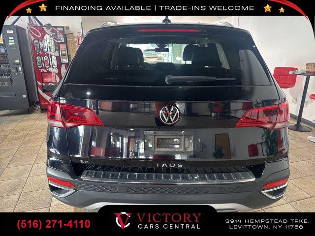All pricing and details are believed to be accurate, but we do not warrant or guarantee such accuracy. The prices shown above may vary from region to region, as will incentives, and are subject to change. All cars are sold cosmetically As-Is. Vehicle information is based on standard equipment and may vary from vehicle to vehicle. Call or email for complete vehicle specific information. Price Does not include tax, title, license, destination charges, finance charges, or any reconditioning fees. Our special Internet pricing cannot be extended without a printed copy of the online pricing. The in-store price may exceed our special online pricing. Sorry but we cannot extend special pricing without a printed copy of the on-line pricing. To take advantage of our special Internet discounts, please print this page and present it to your salesperson at the BEGINNING of the transaction. Special Internet pricing posted on this ad/coupon/promotion is only available to customers who reference such pricing & present the ad at time of sale otherwise our store standard list price applies. Please be advised this ad is a Special Internet only ad. Prices can be modified and adjusted weekly, daily and sometimes hourly due to inquiries, bidding and website traffic on any Vehicles. All displayed inventory is subject to prior sale and all prices expire at midnight on the date displayed. Every reasonable effort has been made to ensure the accuracy of the information contained on this site, however absolute accuracy cannot be guaranteed. Advertised special excludes state tax, title, license, registration, NY state inspection, NYS tire recycling fee, finance charges, and dealer fees if applicable. Please verify any information in question with the dealership sales manager. This is easily done by calling us at (516) 271-4110 or by visiting us at the dealership. **With approved credit. Black 2022 Volkswagen Taos 1.5T SE FWD 8-Speed Automatic with Tiptronic 1.5L I4 Turbocharged DOHC 16V LEV3-SULEV30 158hp
