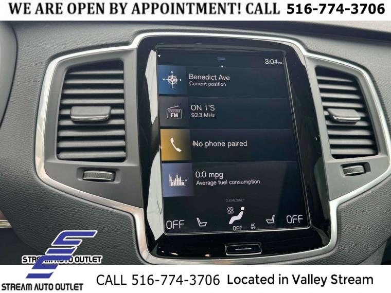 Navigation system: Sensus Navigation, 10 Speakers, AM/FM radio: SiriusXM, Premium audio system: Sensus Connect, Radio data system, Radio: High Performance Audio System, Air Conditioning, Automatic temperature control, Front dual zone A/C, Rear air conditioning, Rear dual zone A/C, Rear window defroster, Memory seat, Power driver seat, Power steering, Power windows, Remote keyless entry, Steering wheel mounted audio controls, Four wheel independent suspension, Speed-sensing steering, Traction control, 4-Wheel Disc Brakes, ABS brakes, Anti-whiplash front head restraints, Dual front impact airbags, Dual front side impact airbags, Emergency communication system: Volvo Cars App w/4 Year Subscription, Front anti-roll bar, Knee airbag, Low tire pressure warning, Occupant sensing airbag, Overhead airbag, Rear anti-roll bar, Power moonroof, Brake assist, Electronic Stability Control, Exterior Parking Camera Rear, Auto High-beam Headlights, Delay-off headlights, Front fog lights, Fully automatic headlights, Rear fog lights, Panic alarm, Security system, Speed control, Auto-dimming door mirrors, Bumpers: body-color, Heated door mirrors, Power door mirrors, Spoiler, Turn signal indicator mirrors, Apple CarPlay/Android Auto, Auto-dimming Rear-View mirror, Driver door bin, Driver vanity mirror, Front reading lights, Garage door transmitter: HomeLink, Genuine wood dashboard insert, Genuine wood door panel insert, Illuminated entry, Leather Shift Knob, Outside temperature display, Passenger vanity mirror, Rear reading lights, Rear seat center armrest, Tachometer, Telescoping steering wheel, Tilt steering wheel, Trip computer, 3rd row seats: bucket, Front Bucket Seats, Heated Front Bucket Seats, Heated front seats, Leather Upholstery, Power passenger seat, Split folding rear seat, Front Center Armrest w/Storage, Passenger door bin, Alloy wheels, Wheels: 19" 6-Spoke Turbine Sparkling Silver Alloy, Rain sensing wipers, Rear window wiper, Variably intermittent wipers, * NYS INSPECTION INCLUDED *, * FULL INTERIOR / EXTERIOR DETAIL *, * BLUETOOTH *, * LIMITED NYS LEMON LAW WARRANTY INCLUDED *, *FRESH OIL CHANGE *, * 150 MULTI POINT INSPECTION *