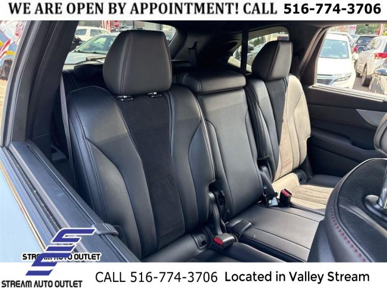 Navigation system: Acura Navigation System with 3D View, 16 Speakers, AM/FM radio: SiriusXM, Audio memory, Premium audio system: Acura/ELS Studio 3D, Radio data system, Radio: ELS Studio 3D Premium Audio System, Air Conditioning, Automatic temperature control, Front dual zone A/C, HVAC memory, Rear air conditioning, Rear window defroster, Memory seat, Power driver seat, Power steering, Power windows, Remote keyless entry, Steering wheel memory, Steering wheel mounted audio controls, A/V remote: CabinControl, Four wheel independent suspension, Speed-sensing steering, Traction control, 4-Wheel Disc Brakes, ABS brakes, Anti-whiplash front head restraints, Dual front impact airbags, Dual front side impact airbags, Emergency communication system: AcuraLink, Front anti-roll bar, Knee airbag, Low tire pressure warning, Occupant sensing airbag, Overhead airbag, Rear anti-roll bar, Power moonroof, Power Liftgate, Brake assist, Electronic Stability Control, Lane departure: Lane Keeping Assist System (LKAS) active, Exterior Parking Camera Rear, Auto High-beam Headlights, Delay-off headlights, Front fog lights, Fully automatic headlights, Panic alarm, Security system, Speed control, Bumpers: body-color, Heated door mirrors, Power door mirrors, Spoiler, Turn signal indicator mirrors, Apple CarPlay/Android Auto, Auto tilt-away steering wheel, Auto-dimming Rear-View mirror, Compass, Driver door bin, Driver vanity mirror, Front reading lights, Garage door transmitter: HomeLink, Heated & Ventilated Front Sport Seats, Illuminated entry, Leather steering wheel, Outside temperature display, Overhead console, Passenger vanity mirror, Rear reading lights, Rear seat center armrest, Sport steering wheel, Tachometer, Telescoping steering wheel, Tilt steering wheel, Trip computer, 3rd row seats: split-bench, Front Bucket Seats, Front Center Armrest, Heated front seats, Perforated Premium Milano Leather Trimmed Seats, Power passenger seat, Split folding rear seat, Ventilated front seats, Passenger door bin, Alloy wheels, Wheels: 20" x 9" Aluminum Alloy, Rain sensing wipers, Rear window wiper, Speed-Sensitive Wipers, Variably intermittent wipers, 4.17 Axle Ratio, * NYS INSPECTION INCLUDED *, * FULL INTERIOR / EXTERIOR DETAIL *, * BLUETOOTH *, * LIMITED NYS LEMON LAW WARRANTY INCLUDED *, *FRESH OIL CHANGE *, * 150 MULTI POINT INSPECTION *