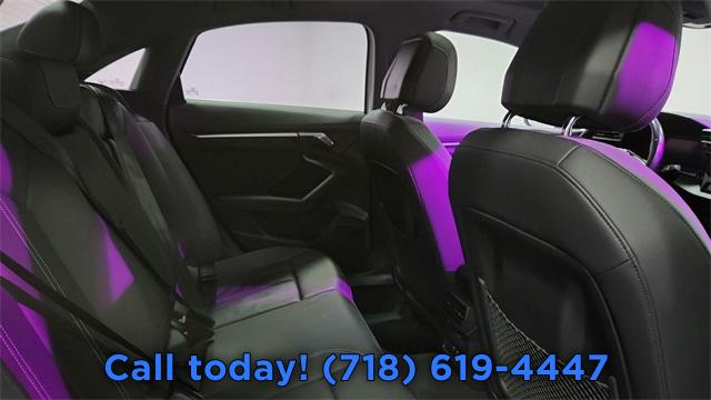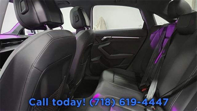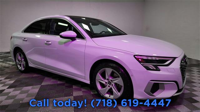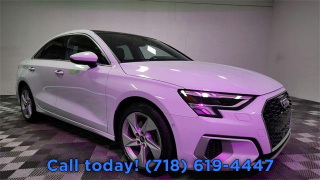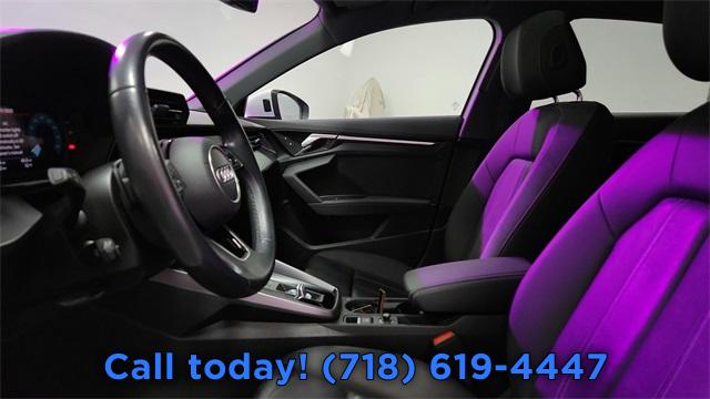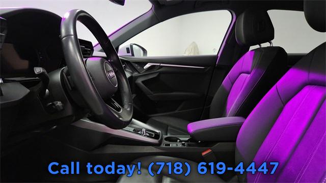 CARFAX One-Owner. 2023 Audi A3 40 Premium FrontTrak Black/Rock Gray Stitching w/Leather Seating Surfaces, Alarm System w/Motion Sensor, AM/FM radio, Audi Advanced Key, Audi Side Assist, Auto High-beam Headlights, Auto-Dimming Interior Mirror w/Compass, Auto-Dimming Power Folding Exterior Mirrors, Automatic temperature control, Convenience Package, Exterior Parking Camera Rear, Front dual zone A/C, Fully automatic headlights, Memory for Driver's Seat, Park Assist, Power moonroof, Rear air conditioning, Rear fog lights, Remote keyless entry, SiriusXM w/360L, Steering wheel mounted audio controls, Wireless Phone Charging Pad.