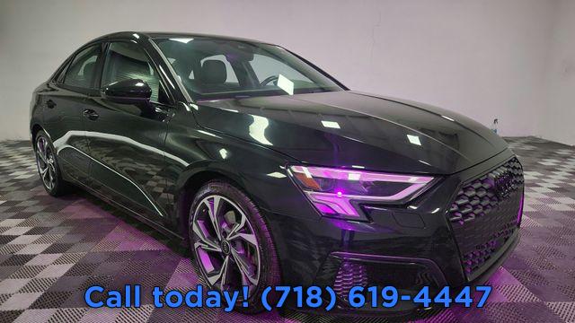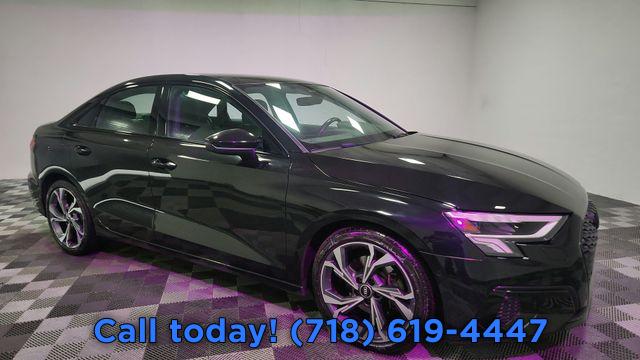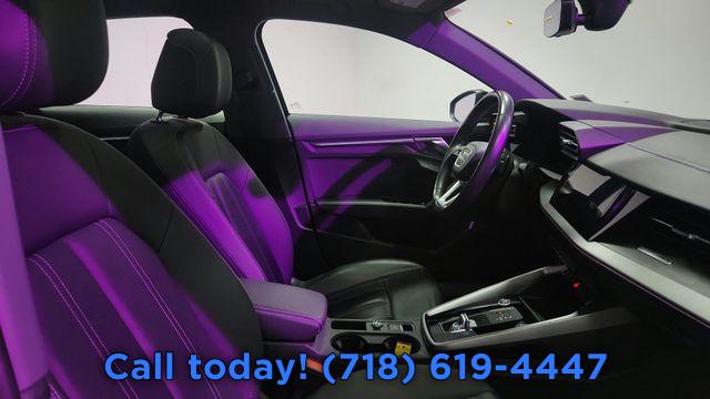 CARFAX One-Owner. 2023 Audi A3 40 Premium Plus Black/Rock Gray Stitching w/Leather Seating Surfaces, Adaptive Cruise Assist w/Lane Guidance, Agate Gray Fine Grain Birch Wood Inlay, Alarm System w/Motion Sensor, Audi Advanced Key, Audi Connect PLUS, Audi MMI Navigation Plus, Audi Side Assist, Audi Virtual Cockpit Plus, Auto High-beam Headlights, Auto-Dimming Interior Mirror w/Compass, Auto-Dimming Power Folding Exterior Mirrors, Automatic temperature control, Bang & Olufsen Sound System w/3D Sound, Black Exterior Trim, Black Optic Sport Package, Convenience Package, Exterior Parking Camera Rear, Front dual zone A/C, Fully automatic headlights, LED Interior Lighting Plus Package, Memory for Driver's Seat, Park Assist, Power moonroof, Premium Plus Package, Rear air conditioning, Rear fog lights, Remote keyless entry, SiriusXM w/360L, Sport Suspension (-15 mm), Steering wheel mounted audio controls, Technology Package, Traffic Sign Recognition, Wheels: 18" 5-Y-Spoke Design, Wireless Phone Charging Pad.