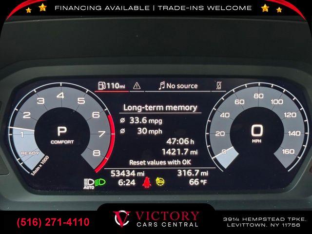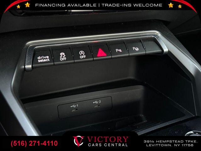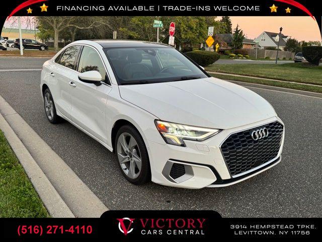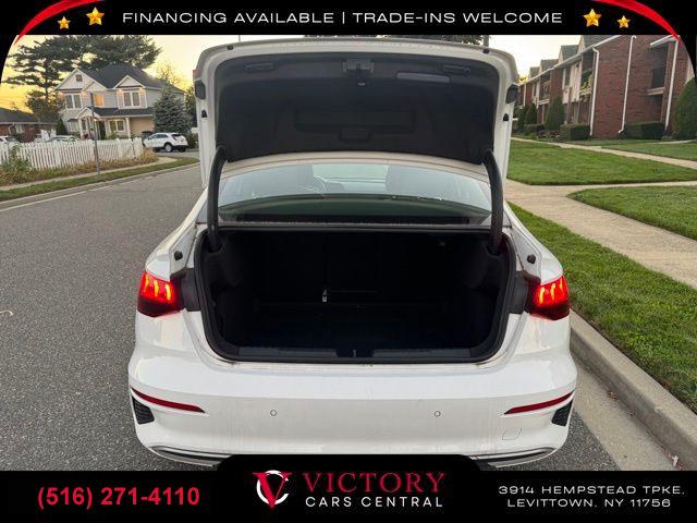 All pricing and details are believed to be accurate, but we do not warrant or guarantee such accuracy. The prices shown above may vary from region to region, as will incentives, and are subject to change. All cars are sold cosmetically As-Is. Vehicle information is based on standard equipment and may vary from vehicle to vehicle. Call or email for complete vehicle specific information. Price Does not include tax, title, license, destination charges, finance charges, or any reconditioning fees. Our special Internet pricing cannot be extended without a printed copy of the online pricing. The in-store price may exceed our special online pricing. Sorry but we cannot extend special pricing without a printed copy of the on-line pricing. To take advantage of our special Internet discounts, please print this page and present it to your salesperson at the BEGINNING of the transaction. Special Internet pricing posted on this ad/coupon/promotion is only available to customers who reference such pricing & present the ad at time of sale otherwise our store standard list price applies. Please be advised this ad is a Special Internet only ad. Prices can be modified and adjusted weekly, daily and sometimes hourly due to inquiries, bidding and website traffic on any Vehicles. All displayed inventory is subject to prior sale and all prices expire at midnight on the date displayed. Every reasonable effort has been made to ensure the accuracy of the information contained on this site, however absolute accuracy cannot be guaranteed. Advertised special excludes state tax, title, license, registration, NY state inspection, NYS tire recycling fee, finance charges, and dealer fees if applicable. Please verify any information in question with the dealership sales manager. This is easily done by calling us at (516) 271-4110 or by visiting us at the dealership. **With approved credit. White 2023 Audi A3 FrontTrak FrontTrak 7-Speed Automatic S tronic 2.0L 4-Cylinder TFSI Leather.