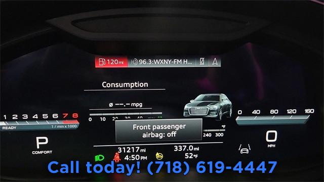 Navigation system: MMI Navigation plus, 10 Speakers, AM/FM radio: SiriusXM w/ 360L, Radio data system, Radio: Audi MMI Nav Plus w/MMI Touch Response, Air Conditioning, Automatic temperature control, Front dual zone A/C, Rear air conditioning, Rear window defroster, Memory seat, Power driver seat, Power steering, Power windows, Remote keyless entry, Steering wheel memory, Steering wheel mounted audio controls, Four wheel independent suspension, Speed-sensing steering, Traction control, 4-Wheel Disc Brakes, ABS brakes, Dual front impact airbags, Dual front side impact airbags, Emergency communication system: Audi connect CARE (limited time subscription), Front anti-roll bar, Knee airbag, Low tire pressure warning, Occupant sensing airbag, Overhead airbag, Rear anti-roll bar, Rear side impact airbag, Power moonroof, Brake assist, Electronic Stability Control, Exterior Parking Camera Rear, Auto High-beam Headlights, Delay-off headlights, Front fog lights, Panic alarm, Security system, Speed control, Auto-dimming door mirrors, Bumpers: body-color, Heated door mirrors, Power door mirrors, Turn signal indicator mirrors, Auto tilt-away steering wheel, Auto-dimming Rear-View mirror, Compass, Driver door bin, Driver vanity mirror, Front reading lights, Garage door transmitter: HomeLink, Genuine wood console insert, Genuine wood dashboard insert, Genuine wood door panel insert, Illuminated entry, Leather Shift Knob, Leather steering wheel, Outside temperature display, Overhead console, Passenger vanity mirror, Rear reading lights, Rear seat center armrest, Tachometer, Telescoping steering wheel, Tilt steering wheel, Trip computer, Front Bucket Seats, Front Center Armrest, Heated Front Seats, Heated front seats, Leather Seating Surfaces, Power passenger seat, Split folding rear seat, Passenger door bin, Alloy wheels, Wheels: 19" Bi-Color Finish 5-Double-Spoke-Design, Rain sensing wipers, Speed-Sensitive Wipers, Variably intermittent wipers
