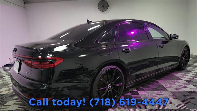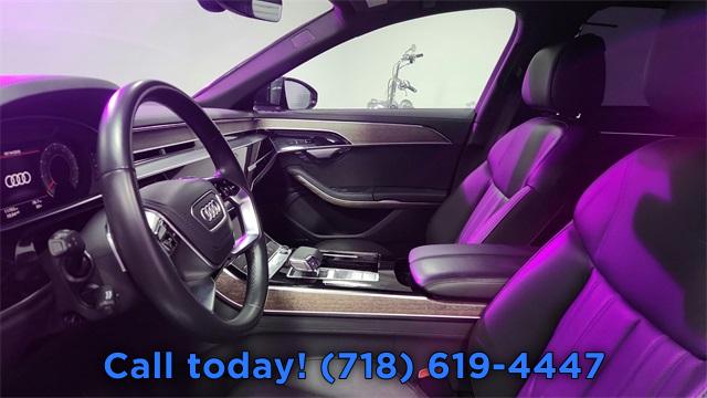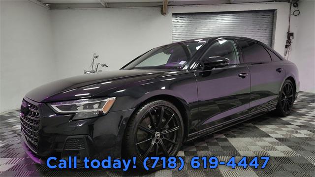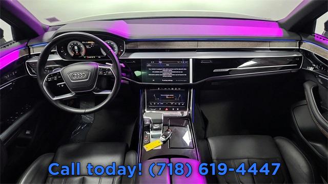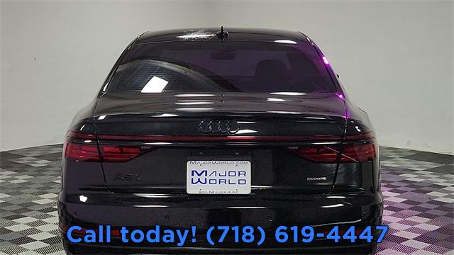 CARFAX One-Owner. 2023 Audi A8 L 55 quattro Black w/Valetta Leather Seat Upholstery or Valcona Leather Seat Upholstery, 20" 10-Parallel-Spoke-Design Wheels, Alu-Optic Buttons, AM/FM radio: SiriusXM, Audi Adaptive Cruise Assist w/Lane Guidance, Audi Side Assist, Auto High-beam Headlights, Automatic temperature control, Bang & Olufsen Premium Sound System w/3D Sound, Black Audi Rings & Model Badges, Black Brake Calipers, Black Optic Plus Package, Comfort Plus Package, Contour/Ambient LED Interior Lighting Package, Dual-Pane Acoustic Glass for Side Windows, Executive Package, Front dual zone A/C, Front fog lights, Front Seat Massage Function, HD Matrix-Design LED Headlights, Head-Up Display, Headlight cleaning, Heated Front Seat Armrests, Heated Rear Outboard Seats, Heated Steering Wheel, Intersection Assist, Navigation system: MMI Navigation plus, Power 2nd-Row Moonroof, Rear air conditioning, Rear dual zone A/C, Remote Park Assist Plus, Seatbelt memory, Steering wheel memory, Steering wheel mounted audio controls, Traffic Sign Recognition, Valcona Leather Seat Upholstery, Wheels: 21" 10-Spoke Design w/Gloss Black Finish.