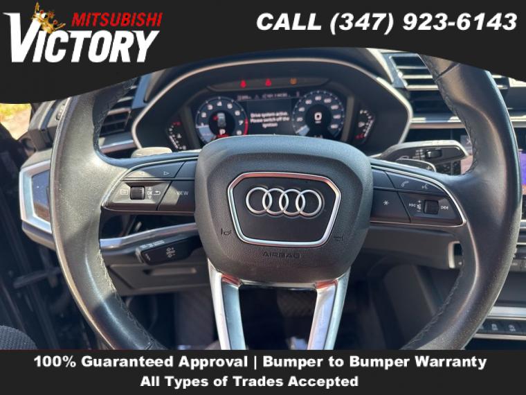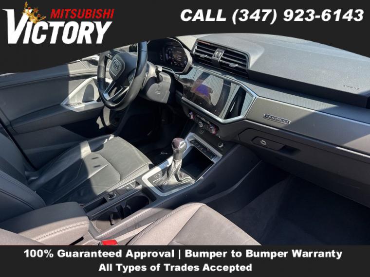 2023 Audi Q3 Premium S Line quattro Black 4D Sport Utility Save yourself Time and Money - Fill out a credit application online at victorymitsubishi.com and get pre-APPROVED! Financing available for all types of credit with low monthly payment that will fit you budget. Down Payment low as $599. Same day delivery. View our entire inventory by visiting our virtual showroom at victorymitsubishi.com - Only 2 blocks away from Exit 13 off I-95 or Minutes from exit 7 on the Hutchinson Parkway. While we make every effort to ensure the data listed here is correct, there may be instances where the pricing, options or vehicle features may be listed incorrectly. Dealer cannot be held liable for data that is listed incorrectly. to see more pictures of this vehicle or call us at (347) 923-6143 today to schedule your test drive. please refer to dealer’s website for exact pricing and for any incentives that we may apply! Our address is 4070 Boston Road, Bronx, NY 10475.