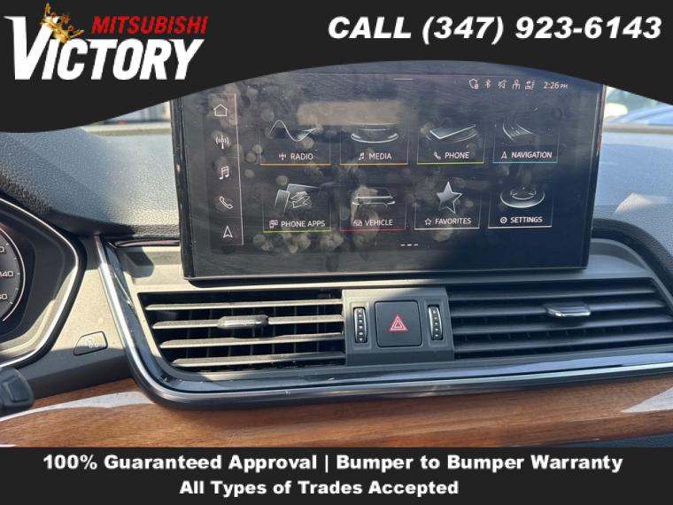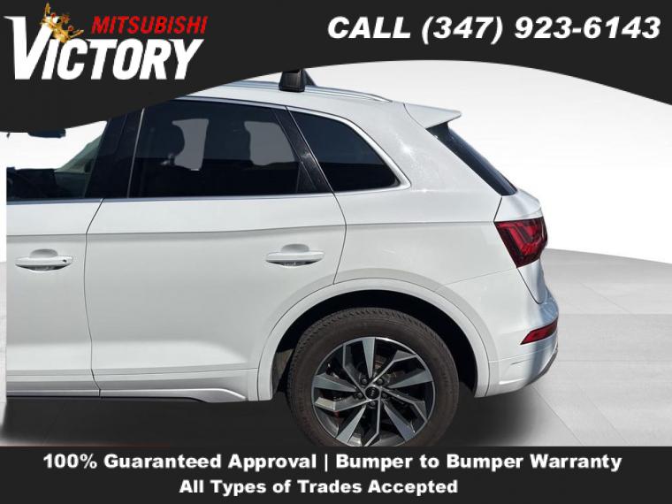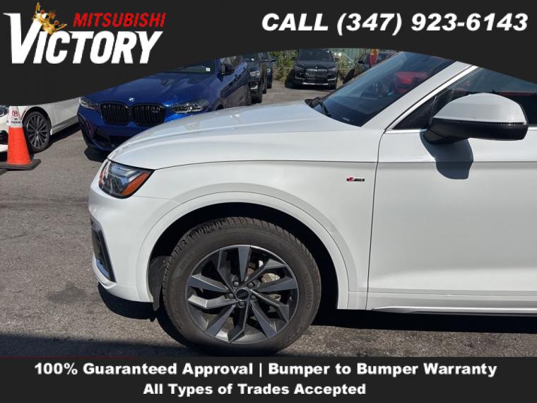 2023 Audi Q5 45 S line Premium quattro Ibis White 4D Sport Utility Save yourself Time and Money - Fill out a credit application online at victorymitsubishi.com and get pre-APPROVED! Financing available for all types of credit with low monthly payment that will fit you budget. Down Payment low as $599. Same day delivery. View our entire inventory by visiting our virtual showroom at victorymitsubishi.com - Only 2 blocks away from Exit 13 off I-95 or Minutes from exit 7 on the Hutchinson Parkway. While we make every effort to ensure the data listed here is correct, there may be instances where the pricing, options or vehicle features may be listed incorrectly. Dealer cannot be held liable for data that is listed incorrectly. to see more pictures of this vehicle or call us at (347) 923-6143 today to schedule your test drive. please refer to dealer’s website for exact pricing and for any incentives that we may apply! Our address is 4070 Boston Road, Bronx, NY 10475.