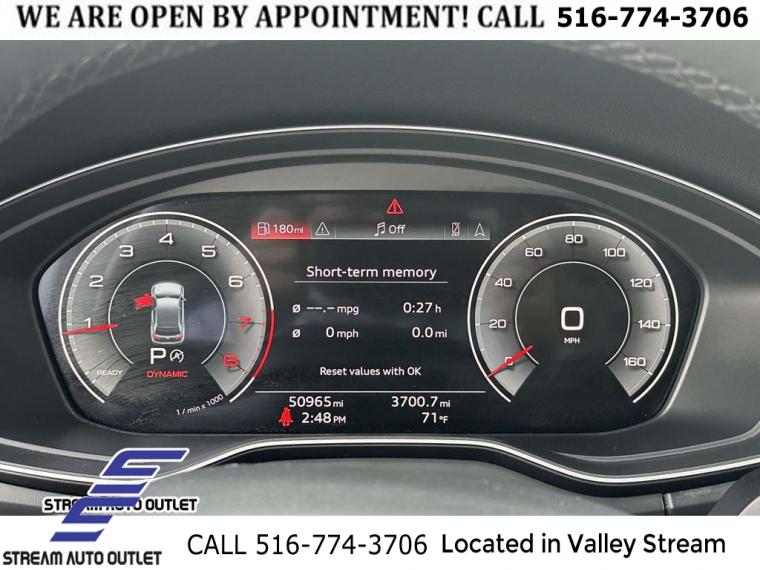 10 Speakers, AM/FM radio, Radio data system, Radio: Audi Sound System, Air Conditioning, Automatic temperature control, Front dual zone A/C, Rear air conditioning, Rear window defroster, Power driver seat, Power steering, Power windows, Remote keyless entry, Steering wheel mounted audio controls, Four wheel independent suspension, Speed-sensing steering, Traction control, 4-Wheel Disc Brakes, ABS brakes, Dual front impact airbags, Dual front side impact airbags, Emergency communication system: Audi connect CARE, Front anti-roll bar, Low tire pressure warning, Occupant sensing airbag, Overhead airbag, Rear anti-roll bar, Power Liftgate, Brake assist, Electronic Stability Control, Exterior Parking Camera Rear, Delay-off headlights, Front fog lights, Rear fog lights, Panic alarm, Security system, Speed control, Bumpers: body-color, Heated door mirrors, Power door mirrors, Roof rack, Spoiler, Turn signal indicator mirrors, Auto-dimming Rear-View mirror, Compass, Driver door bin, Driver vanity mirror, Front reading lights, Garage door transmitter: HomeLink, Genuine wood console insert, Genuine wood dashboard insert, Genuine wood door panel insert, Heated 8-Way Power Front Bucket Seats, Illuminated entry, Leather Shift Knob, Outside temperature display, Overhead console, Passenger vanity mirror, Rear reading lights, Rear seat center armrest, Tachometer, Telescoping steering wheel, Tilt steering wheel, Trip computer, Front Bucket Seats, Front Center Armrest, Heated front seats, Leather Seating Surfaces, Power passenger seat, Split folding rear seat, Passenger door bin, Alloy wheels, Wheels: 18" 5-Arm-Turbine Design, Rain sensing wipers, Rear window wiper, Speed-Sensitive Wipers, Variably intermittent wipers, 5.302 Axle Ratio, * NYS INSPECTION INCLUDED *, * FULL INTERIOR / EXTERIOR DETAIL *, * BLUETOOTH *, * LIMITED NYS LEMON LAW WARRANTY INCLUDED *, *FRESH OIL CHANGE *, * 150 MULTI POINT INSPECTION *