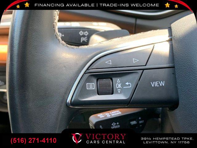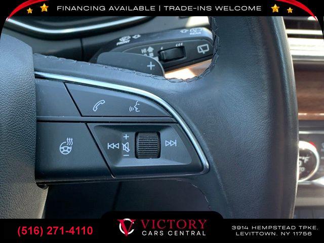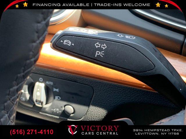 10 Speakers, AM/FM radio, Radio data system, Radio: Audi Sound System, Air Conditioning, Automatic temperature control, Front dual zone A/C, Rear air conditioning, Rear window defroster, Power driver seat, Power steering, Power windows, Remote keyless entry, Steering wheel mounted audio controls, Four wheel independent suspension, Speed-sensing steering, Traction control, 4-Wheel Disc Brakes, ABS brakes, Dual front impact airbags, Dual front side impact airbags, Emergency communication system: Audi connect CARE, Front anti-roll bar, Low tire pressure warning, Occupant sensing airbag, Overhead airbag, Rear anti-roll bar, Power Liftgate, Brake assist, Electronic Stability Control, Exterior Parking Camera Rear, Delay-off headlights, Front fog lights, Rear fog lights, Panic alarm, Security system, Speed control, Bumpers: body-color, Heated door mirrors, Power door mirrors, Roof rack, Spoiler, Turn signal indicator mirrors, Auto-dimming Rear-View mirror, Compass, Driver door bin, Driver vanity mirror, Front reading lights, Garage door transmitter: HomeLink, Genuine wood console insert, Genuine wood dashboard insert, Genuine wood door panel insert, Heated 8-Way Power Front Bucket Seats, Illuminated entry, Leather Shift Knob, Outside temperature display, Overhead console, Passenger vanity mirror, Rear reading lights, Rear seat center armrest, Tachometer, Telescoping steering wheel, Tilt steering wheel, Trip computer, Front Bucket Seats, Front Center Armrest, Heated front seats, Leather Seating Surfaces, Power passenger seat, Split folding rear seat, Passenger door bin, Alloy wheels, Wheels: 18" 5-Arm-Turbine Design, Rain sensing wipers, Rear window wiper, Speed-Sensitive Wipers, Variably intermittent wipers, 5.302 Axle Ratio