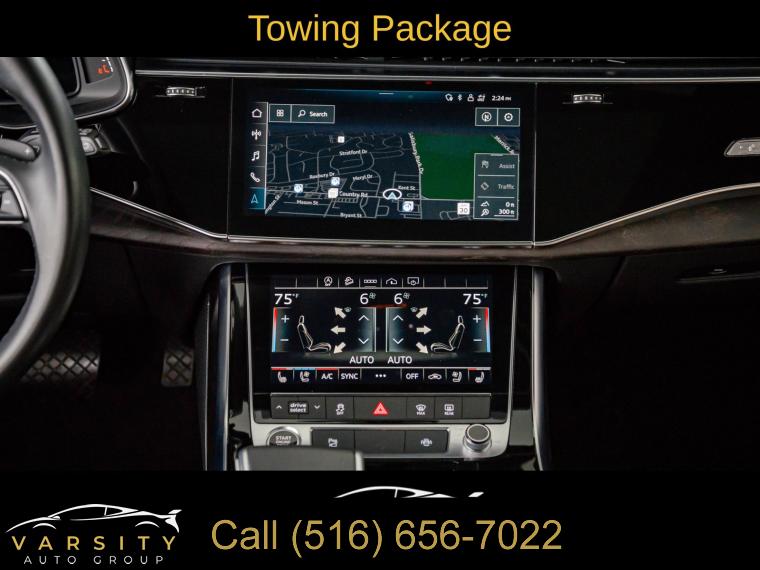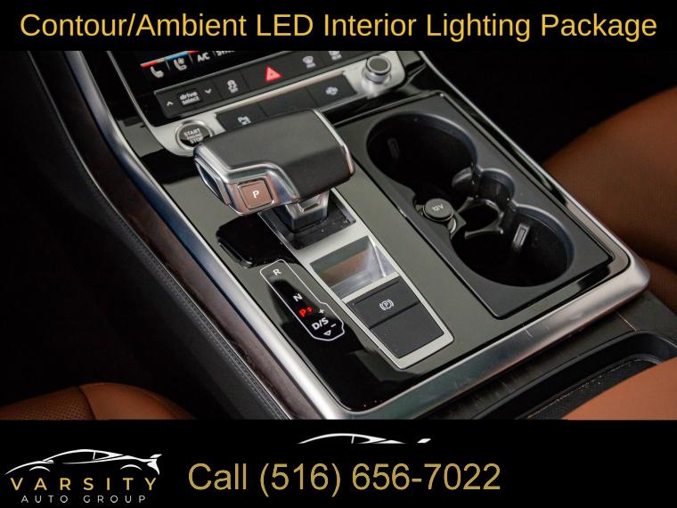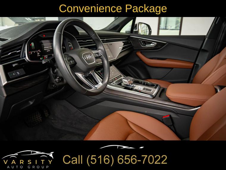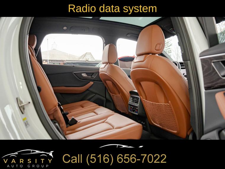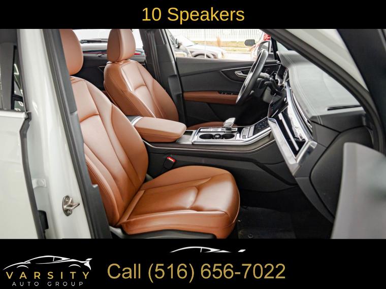Navigation system: Audi MMI Navigation plus with Touch Response, Contour/Ambient LED Interior Lighting Package, Convenience Package, Executive Package, Premium Plus Package, Towing Package, 10 Speakers, AM/FM radio: SiriusXM w/ 360L, Bang & Olufsen Premium Sound System w/3D Sound, Radio data system, Radio: Audi Sound System, 4-Zone Automatic Climate Control, Air Conditioning, Automatic temperature control, Front dual zone A/C, Rear air conditioning, Rear window defroster, Heated Rear Seats, Memory seat, Power driver seat, Power steering, Power windows, Remote keyless entry, Steering wheel memory, Steering wheel mounted audio controls, Four wheel independent suspension, Speed-sensing steering, Traction control, 4-Wheel Disc Brakes, ABS brakes, Dual front impact airbags, Dual front side impact airbags, Emergency communication system: Audi connect CARE, Front anti-roll bar, Low tire pressure warning, Occupant sensing airbag, Overhead airbag, Rear anti-roll bar, Rear side impact airbag, Power moonroof: Panoramic, Power Liftgate, Brake assist, Electronic Stability Control, Exterior Parking Camera Rear, Auto High-beam Headlights, Delay-off headlights, Front fog lights, Fully automatic headlights, Rear fog lights, Panic alarm, Security system, Adaptive Cruise Assist w/Lane Guidance, Speed control, Auto-dimming door mirrors, Bumpers: body-color, Heated door mirrors, Matrix-Design LED Headlights w/DRL Signature, Power door mirrors, Roof rack: rails only, Spoiler, Turn signal indicator mirrors, Audi Beam Rings, Audi Guard All-Weather Mats, Audi Phone Box w/Wireless Charging, Auto-dimming Rear-View mirror, Black Cloth Headliner, Compass, Driver door bin, Driver vanity mirror, Front reading lights, Garage door transmitter: HomeLink, Genuine wood door panel insert, Gray/Brown Fine Grain Ash Natural Wood Inlays, Heated Steering Wheel, Illuminated Door Sills, Illuminated entry, Leather Shift Knob, Leather steering wheel, Outside temperature display, Overhead console, Passenger vanity mirror, Rear reading lights, Rear seat center armrest, Tachometer, Telescoping steering wheel, Tilt steering wheel, Topview Camera System, Trip computer, 3rd row seats: bench, Front Bucket Seats, Front Center Armrest, Front Seats w/Ventilation, Heated Front Bucket Seats, Heated front seats, Leather Seating Surfaces, Power passenger seat, Reclining 3rd row seat, Split folding rear seat, Passenger door bin, Privacy Trunk Cover, Tow Hitch Receiver, Alloy wheels, Wheels: 19" 5-Arm-Star Design, Rear Door/Side Windows & Tailgate Sunshades, Rain sensing wipers, Rear window wiper, Variably intermittent wipers, 3.76 Axle Ratio, The Price you See, is the Price You Pay!!!, Audi Q7 45 Premium Plus quattro, Okapi Brown w/Leather, One Owner, Clean CARFAX