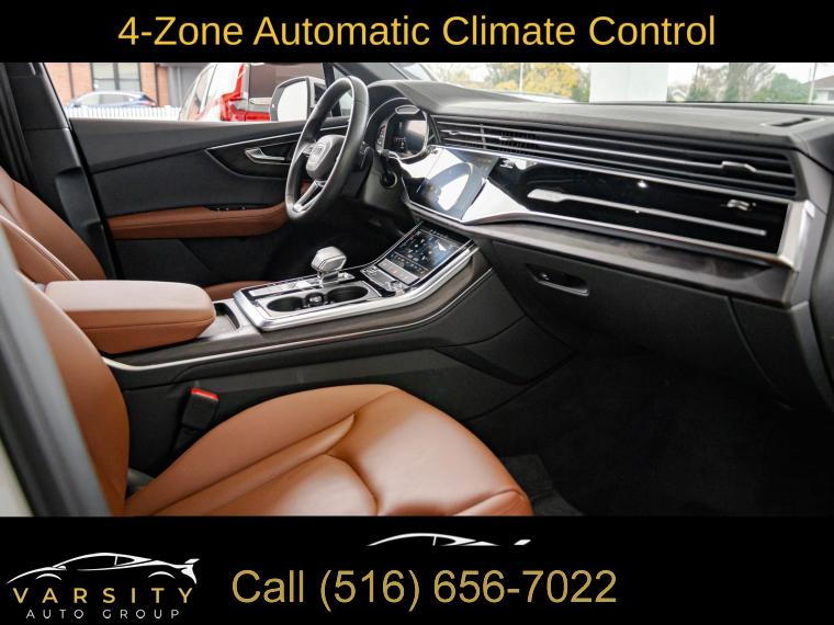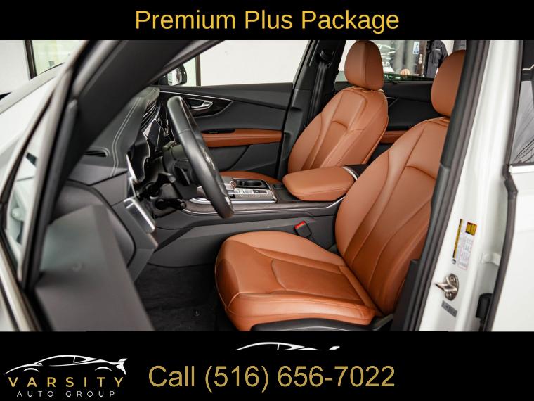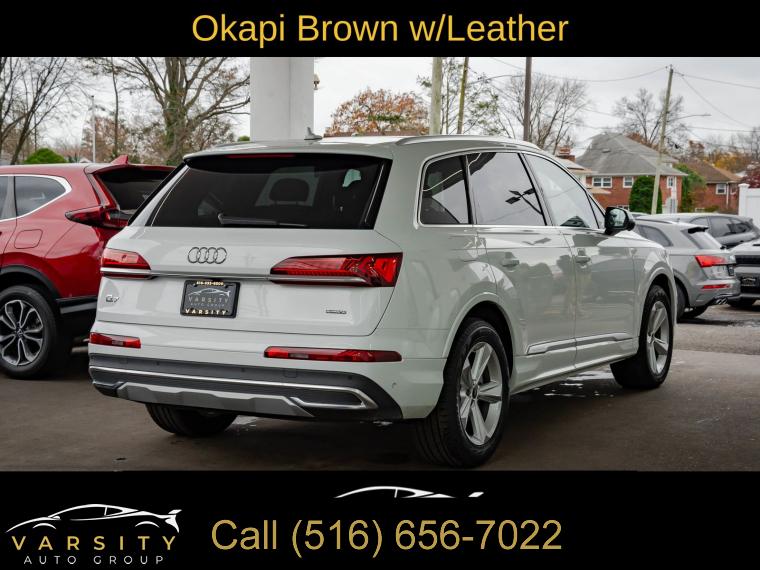 The Price you See, is the Price You Pay!!!, Audi Q7 45 Premium Plus quattro, Okapi Brown w/Leather, One Owner, Clean CARFAX, 10 Speakers, 3.76 Axle Ratio, 3rd row seats: bench, 4-Wheel Disc Brakes, 4-Zone Automatic Climate Control, ABS brakes, Adaptive Cruise Assist w/Lane Guidance, Air Conditioning, Alloy wheels, AM/FM radio: SiriusXM w/ 360L, Audi Beam Rings, Audi Guard All-Weather Mats, Audi Phone Box w/Wireless Charging, Auto High-beam Headlights, Auto-dimming door mirrors, Auto-dimming Rear-View mirror, Automatic temperature control, Bang & Olufsen Premium Sound System w/3D Sound, Black Cloth Headliner, Brake assist, Bumpers: body-color, Compass, Contour/Ambient LED Interior Lighting Package, Convenience Package, Delay-off headlights, Driver door bin, Driver vanity mirror, Dual front impact airbags, Dual front side impact airbags, Electronic Stability Control, Emergency communication system: Audi connect CARE, Executive Package, Exterior Parking Camera Rear, Four wheel independent suspension, Front anti-roll bar, Front Bucket Seats, Front Center Armrest, Front dual zone A/C, Front fog lights, Front reading lights, Front Seats w/Ventilation, Fully automatic headlights, Garage door transmitter: HomeLink, Genuine wood door panel insert, Gray/Brown Fine Grain Ash Natural Wood Inlays, Heated door mirrors, Heated Front Bucket Seats, Heated front seats, Heated Rear Seats, Heated Steering Wheel, Illuminated Door Sills, Illuminated entry, Leather Seating Surfaces, Leather Shift Knob, Leather steering wheel, Low tire pressure warning, Matrix-Design LED Headlights w/DRL Signature, Memory seat, Navigation system: Audi MMI Navigation plus with Touch Response, Occupant sensing airbag, Outside temperature display, Overhead airbag, Overhead console, Panic alarm, Passenger door bin, Passenger vanity mirror, Power door mirrors, Power driver seat, Power Liftgate, Power moonroof: Panoramic, Power passenger seat, Power steering, Power windows, Premium Plus Package, Privacy Trunk Cover, Radio data system, Radio: Audi Sound System, Rain sensing wipers, Rear air conditioning, Rear anti-roll bar, Rear Door/Side Windows & Tailgate Sunshades, Rear fog lights, Rear reading lights, Rear seat center armrest, Rear side impact airbag, Rear window defroster, Rear window wiper, Reclining 3rd row seat, Remote keyless entry, Roof rack: rails only, Security system, Speed control, Speed-sensing steering, Split folding rear seat, Spoiler, Steering wheel memory, Steering wheel mounted audio controls, Tachometer, Telescoping steering wheel, Tilt steering wheel, Topview Camera System, Tow Hitch Receiver, Towing Package, Traction control, Trip computer, Turn signal indicator mirrors, Variably intermittent wipers, Wheels: 19" 5-Arm-Star Design. Carrara White 2023 Audi Q7 45 Premium Plus quattro quattro 8-Speed Automatic with Tiptronic 2.0L 4-Cylinder TFSI Odometer is 5516 miles below market average!