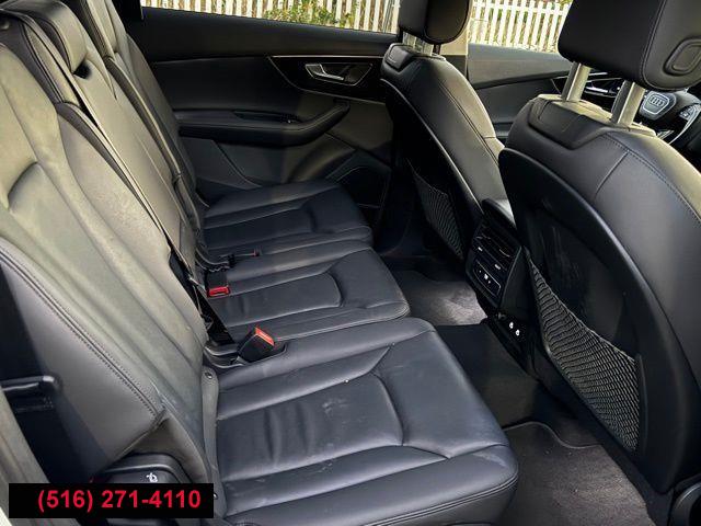Navigation system: Audi MMI Navigation plus with Touch Response, 10 Speakers, AM/FM radio: SiriusXM w/ 360L, Radio data system, Radio: Audi Sound System, Air Conditioning, Automatic temperature control, Front dual zone A/C, Rear air conditioning, Rear window defroster, Memory seat, Power driver seat, Power steering, Power windows, Remote keyless entry, Steering wheel memory, Steering wheel mounted audio controls, Four wheel independent suspension, Speed-sensing steering, Traction control, 4-Wheel Disc Brakes, ABS brakes, Dual front impact airbags, Dual front side impact airbags, Emergency communication system: Audi connect CARE, Front anti-roll bar, Low tire pressure warning, Occupant sensing airbag, Overhead airbag, Rear anti-roll bar, Rear side impact airbag, Power moonroof: Panoramic, Power Liftgate, Brake assist, Electronic Stability Control, Exterior Parking Camera Rear, Auto High-beam Headlights, Delay-off headlights, Front fog lights, Fully automatic headlights, Rear fog lights, Panic alarm, Security system, Speed control, Auto-dimming door mirrors, Bumpers: body-color, Heated door mirrors, Power door mirrors, Roof rack: rails only, Spoiler, Turn signal indicator mirrors, Auto-dimming Rear-View mirror, Compass, Driver door bin, Driver vanity mirror, Front reading lights, Garage door transmitter: HomeLink, Genuine wood door panel insert, Illuminated entry, Leather Shift Knob, Leather steering wheel, Outside temperature display, Overhead console, Passenger vanity mirror, Rear reading lights, Rear seat center armrest, Tachometer, Telescoping steering wheel, Tilt steering wheel, Trip computer, 3rd row seats: bench, Front Bucket Seats, Front Center Armrest, Heated Front Bucket Seats, Heated front seats, Leather Seating Surfaces, Power passenger seat, Reclining 3rd row seat, Split folding rear seat, Passenger door bin, Alloy wheels, Wheels: 19" 5-Arm-Star Design, Rain sensing wipers, Rear window wiper, Variably intermittent wipers, 3.204 Axle Ratio