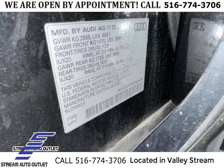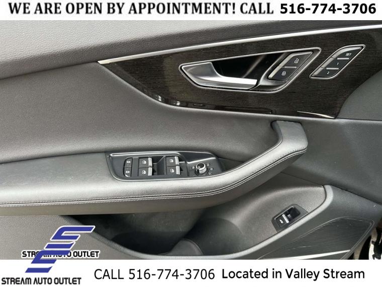 Navigation system: Audi MMI Navigation plus with Touch Response, 10 Speakers, AM/FM radio: SiriusXM w/ 360L, Radio data system, Radio: Audi Sound System, Air Conditioning, Automatic temperature control, Front dual zone A/C, Rear air conditioning, Rear window defroster, Memory seat, Power driver seat, Power steering, Power windows, Remote keyless entry, Steering wheel memory, Steering wheel mounted audio controls, Four wheel independent suspension, Speed-sensing steering, Traction control, 4-Wheel Disc Brakes, ABS brakes, Dual front impact airbags, Dual front side impact airbags, Emergency communication system: Audi connect CARE, Front anti-roll bar, Low tire pressure warning, Occupant sensing airbag, Overhead airbag, Rear anti-roll bar, Rear side impact airbag, Power moonroof: Panoramic, Power Liftgate, Brake assist, Electronic Stability Control, Exterior Parking Camera Rear, Auto High-beam Headlights, Delay-off headlights, Front fog lights, Fully automatic headlights, Rear fog lights, Panic alarm, Security system, Speed control, Auto-dimming door mirrors, Bumpers: body-color, Heated door mirrors, Power door mirrors, Roof rack: rails only, Spoiler, Turn signal indicator mirrors, Auto-dimming Rear-View mirror, Compass, Driver door bin, Driver vanity mirror, Front reading lights, Garage door transmitter: HomeLink, Genuine wood door panel insert, Illuminated entry, Leather Shift Knob, Leather steering wheel, Outside temperature display, Overhead console, Passenger vanity mirror, Rear reading lights, Rear seat center armrest, Tachometer, Telescoping steering wheel, Tilt steering wheel, Trip computer, 3rd row seats: bench, Front Bucket Seats, Front Center Armrest, Heated Front Bucket Seats, Heated front seats, Leather Seating Surfaces, Power passenger seat, Reclining 3rd row seat, Split folding rear seat, Passenger door bin, Alloy wheels, Wheels: 19" 5-Arm-Star Design, Rain sensing wipers, Rear window wiper, Variably intermittent wipers, 3.204 Axle Ratio, * NYS INSPECTION INCLUDED *, * FULL INTERIOR / EXTERIOR DETAIL *, * BLUETOOTH *, * LIMITED NYS LEMON LAW WARRANTY INCLUDED *, *FRESH OIL CHANGE *, * 150 MULTI POINT INSPECTION *