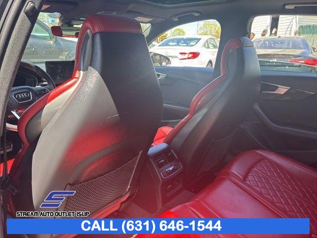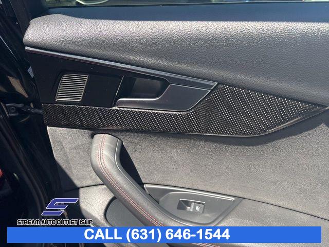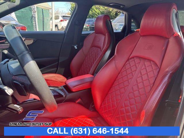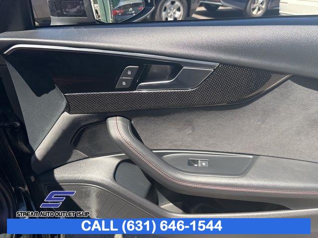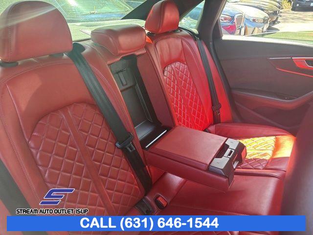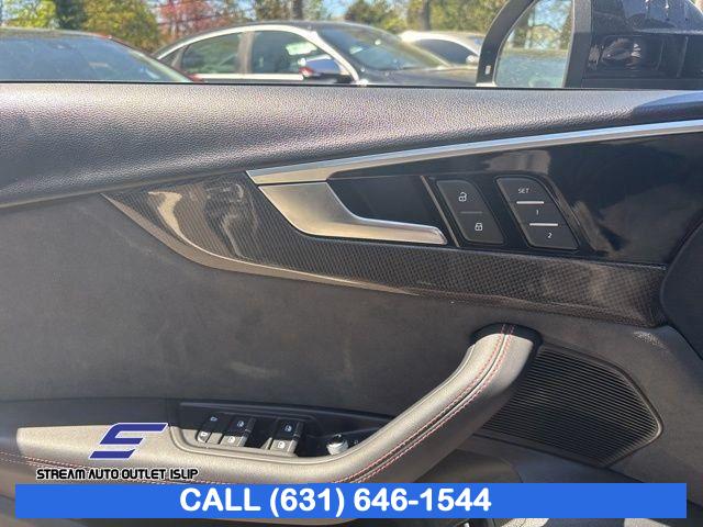 10 Speakers, AM/FM radio, Radio data system, Radio: MMI w/Audi Sound System, Air Conditioning, Automatic temperature control, Front dual zone A/C, Rear air conditioning, Rear window defroster, Power driver seat, Power steering, Power windows, Remote keyless entry, Steering wheel mounted audio controls, Four wheel independent suspension, Speed-sensing steering, Traction control, 4-Wheel Disc Brakes, ABS brakes, Dual front impact airbags, Dual front side impact airbags, Emergency communication system: Audi connect CARE, Front anti-roll bar, Knee airbag, Low tire pressure warning, Occupant sensing airbag, Overhead airbag, Rear anti-roll bar, Power moonroof, Brake assist, Electronic Stability Control, Exterior Parking Camera Rear, Auto High-beam Headlights, Delay-off headlights, Front fog lights, Panic alarm, Speed control, Bumpers: body-color, Heated door mirrors, Power door mirrors, Spoiler, Turn signal indicator mirrors, Audi smartphone interface (Apple CarPlay/Android Auto), Auto-dimming Rear-View mirror, Compass, Driver door bin, Driver vanity mirror, Front reading lights, Garage door transmitter: HomeLink, Heated Front S Sport Seats, Illuminated entry, Leather Shift Knob, Leather steering wheel, Outside temperature display, Overhead console, Passenger vanity mirror, Rear reading lights, Rear seat center armrest, Sport steering wheel, Tachometer, Telescoping steering wheel, Tilt steering wheel, Trip computer, Front Bucket Seats, Front Center Armrest, Heated front seats, Leather/Dinamica Seating Surfaces, Power passenger seat, Split folding rear seat, Passenger door bin, Alloy wheels, Wheels: 19" 5-Arm-Torsio Design, Rain sensing wipers, Speed-Sensitive Wipers, Variably intermittent wipers