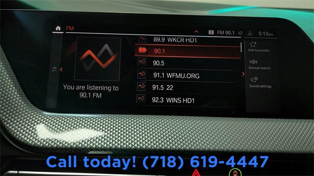 Navigation, Navigation System, Connected Package Pro, 10 Speakers, AM/FM radio: SiriusXM, Hi-Fi Sound System, Radio data system, Radio: AM/FM Audio System, SiriusXM Satellite Radio w/1 Year Subscription, Air Conditioning, Automatic temperature control, Front dual zone A/C, Rear window defroster, Comfort Access Keyless Entry, Lumbar Support, Memory seat, Power driver seat, Power steering, Power windows, Remote keyless entry, Steering wheel mounted audio controls, Four wheel independent suspension, Speed-sensing steering, Traction control, 4-Wheel Disc Brakes, ABS brakes, Dual front impact airbags, Dual front side impact airbags, Emergency communication system: BMW Assist eCall, Front anti-roll bar, Knee airbag, Low tire pressure warning, Occupant sensing airbag, Overhead airbag, Rear anti-roll bar, Panoramic Moonroof, Brake assist, Electronic Stability Control, Exterior Parking Camera Rear, Auto High-beam Headlights, Delay-off headlights, Front fog lights, Fully automatic headlights, Panic alarm, Security system, Speed control, Auto-dimming door mirrors, Bumpers: body-color, Heated door mirrors, Power door mirrors, Turn signal indicator mirrors, Apple CarPlay & Android Auto Compatibility, Apple CarPlay Compatibility, Auto-dimming Rear-View mirror, BMW Assist eCall, BMW TeleServices, Compass, ConnectedDrive Services, Driver door bin, Driver vanity mirror, Enhanced USB & Bluetooth, Front reading lights, Heated Steering Wheel, Illuminated Brooklyn Trim, Illuminated entry, Outside temperature display, Passenger vanity mirror, Rear reading lights, Rear seat center armrest, Sport steering wheel, Tachometer, Telescoping steering wheel, Tilt steering wheel, Trip computer, WiFi Hotspot, Wireless Charging, Front Bucket Seats, Front Center Armrest, Heated Front Seats, Heated Front Seats & Steering Wheel, Power Front Seats, Power passenger seat, SensaTec Upholstery, Split folding rear seat, Sport Seats, Passenger door bin, Alloy wheels, Wheels: 17" x 7.5" Double-Spoke, Rain sensing wipers, Speed-Sensitive Wipers, Variably intermittent wipers
