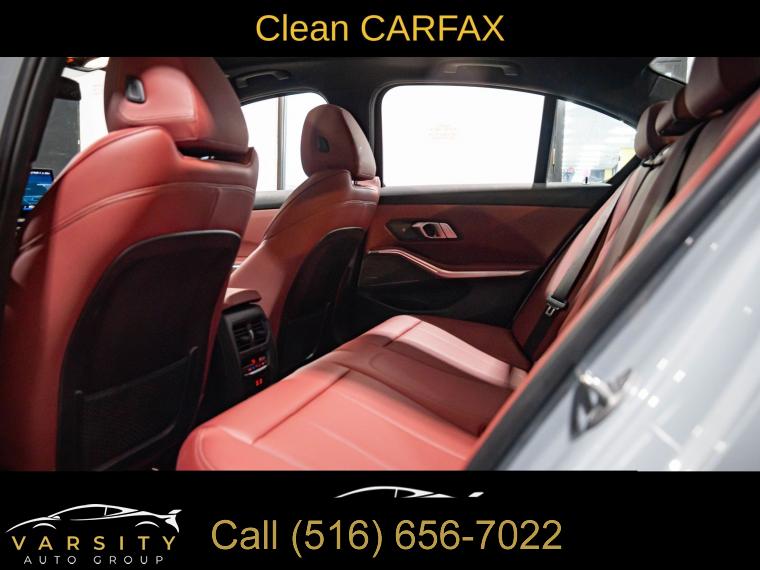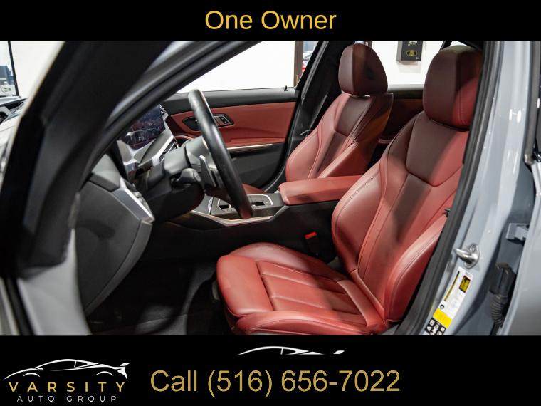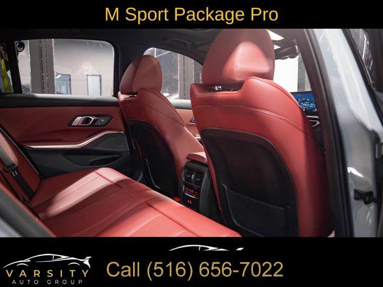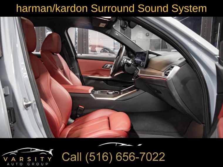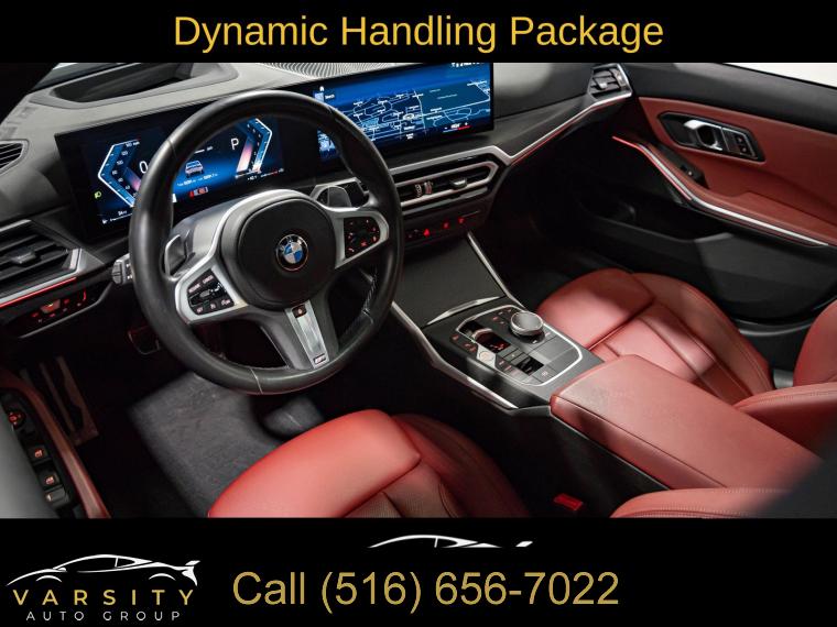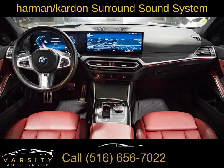 Navigation System, Connected Package Pro, Driving Assistance Package, Dynamic Handling Package, M Sport Package, M Sport Package (337), M Sport Package Pro, Parking Assistance Package, Premium Package, Shadowline Package, 10 Speakers, AM/FM radio: SiriusXM, harman/kardon Surround Sound System, Hi-Fi Sound System, Radio data system, Radio: AM/FM Audio System, SiriusXM Satellite Radio w/1 Year Subscription, Air Conditioning, Automatic temperature control, Front dual zone A/C, Rear air conditioning, Rear window defroster, Comfort Access Keyless Entry, Memory seat, Power driver seat, Power steering, Power windows, Remote Engine Start, Remote keyless entry, Steering wheel mounted audio controls, Adaptive M Suspension, Four wheel independent suspension, Speed-sensing steering, Traction control, 4-Wheel Disc Brakes, ABS brakes, Dual front impact airbags, Dual front side impact airbags, Emergency communication system: BMW Assist eCall, Front anti-roll bar, Increased Top Speed Limiter, Knee airbag, Low tire pressure warning, M Sport Brakes w/Blue Calipers, M Sport Brakes w/Red Calipers, Occupant sensing airbag, Overhead airbag, Rear anti-roll bar, Variable Sport Steering, Power moonroof, Active Blind Spot Detection, Brake assist, Electronic Stability Control, Lane Departure Warning System, Exterior Parking Camera Rear, Rear-View Camera, Auto High-beam Headlights, Delay-off headlights, Fully automatic headlights, Panic alarm, Security system, Speed control, Aerodynamic Kit, Auto-dimming door mirrors, Black Mirror Caps, Bumpers: body-color, Extended Shadowline Trim, Heated door mirrors, LED Lights w/Cornering Lights, M Shadowline Lights, M Sport Suspension, Power door mirrors, Rear Spoiler, Turn signal indicator mirrors, Without Lines Designation Outside, Active Driving Assistant, Active Park Distance Control, Apple CarPlay & Android Auto Compatibility, Apple CarPlay Compatibility, Auto-dimming Rear-View mirror, BMW Assist eCall, BMW Curved Display, BMW Curved Display w/HUD, BMW TeleServices, Compass, ConnectedDrive Services, Driver door bin, Driver vanity mirror, Enhanced USB & Bluetooth Plus Smartphone Integration, Front reading lights, Garage door transmitter, Genuine wood console insert, Genuine wood dashboard insert, Heated Steering Wheel, Illuminated entry, Leather Shift Knob, Leather steering wheel, M Steering Wheel, Outside temperature display, Park Distance Control, Parking Assistant Plus, Passenger vanity mirror, Rear reading lights, Rear seat center armrest, Sport steering wheel, Surround View w/3D View, Tachometer, Telescoping steering wheel, Tilt steering wheel, Trip computer, Widescreen Display, Driver Lumbar Support, Front Bucket Seats, Front Center Armrest, Heated Front Seats, Perforated Sensatec Upholstery, Power Front Seats, Power passenger seat, Split folding rear seat, Sport Seats, Passenger door bin, Alloy wheels, Wheels: 18" x 7.5" Lt/Aly Double-Spoke (Style 796), Wheels: 19" x 8.0" Fr & 19" x 8.5" Rr (Style 791M), Wheels: 19" x 8" M Double-Spoke Bi-Color Jet Black, Wheels: 19" x 8" M Double-Spoke Jet Black, Rain sensing wipers, Speed-Sensitive Wipers, Variably intermittent wipers, 2023 BMW 3 Series 330i xDrive M Sport, Brooklyn Gray Metallic, Tacora Red w/Perforated Sensatec Upholstery, One Owner, Clean CARFAX