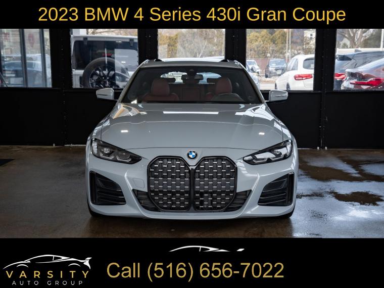 Navigation System, M Sport Package, M Sport Package (337), Premium Package 2, Shadowline Package, 10 Speakers, AM/FM radio: SiriusXM with 360L, Hi-Fi Sound System, Radio data system, Radio: AM/FM Audio System, SiriusXM w/360L, Air Conditioning, Automatic temperature control, Front dual zone A/C, Rear air conditioning, Rear window defroster, Lumbar Support, Memory seat, Power driver seat, Power steering, Power windows, Remote keyless entry, Steering wheel mounted audio controls, Four wheel independent suspension, Speed-sensing steering, Traction control, 4-Wheel Disc Brakes, ABS brakes, Dual front impact airbags, Dual front side impact airbags, Emergency communication system: BMW Assist eCall, Front anti-roll bar, Knee airbag, Low tire pressure warning, Occupant sensing airbag, Overhead airbag, Rear anti-roll bar, Variable Sport Steering, Power moonroof, Power Liftgate, Brake assist, Electronic Stability Control, Exterior Parking Camera Rear, Auto High-beam Headlights, Delay-off headlights, Fully automatic headlights, Panic alarm, Security system, Speed control, Aerodynamic Kit, Auto-dimming door mirrors, Bumpers: body-color, Extended Shadowline Trim, Heated door mirrors, M Shadowline Lights, M Sport Suspension, Power door mirrors, Rear Spoiler, Shadowline Exterior Trim, Turn signal indicator mirrors, Without Lines Designation Outside, Ambient Lighting, Apple CarPlay & Android Auto Compatibility, Apple CarPlay Compatibility, Auto-dimming Rear-View mirror, BMW Assist eCall, BMW TeleServices, Compass, ConnectedDrive Services, Driver door bin, Driver vanity mirror, Front reading lights, Garage door transmitter, Genuine wood console insert, Genuine wood dashboard insert, Gesture Control, Heated Steering Wheel, Illuminated entry, Live Cockpit Pro w/Navi, M Steering Wheel, Outside temperature display, Overhead console, Passenger vanity mirror, Rear reading lights, Rear seat center armrest, Sport steering wheel, Tachometer, Telescoping steering wheel, Tilt steering wheel, Trip computer, Wireless Charging, Front Bucket Seats, Front Center Armrest, Heated Front Seats, Perforated Sensatec Upholstery, Power Front Seats, Power passenger seat, Split folding rear seat, Sport Seats, Mobility Kit, Passenger door bin, Alloy wheels, Wheels: 18" x 8.5" Double-Spoke Bi-Color, Wheels: 19" x 8.5" Fr & 19" x 9.0" Rr Bi-Color Blk, Rain sensing wipers, Speed-Sensitive Wipers, Variably intermittent wipers, 2023 BMW 4 Series 430i Gran Coupe, Brooklyn Gray Metallic