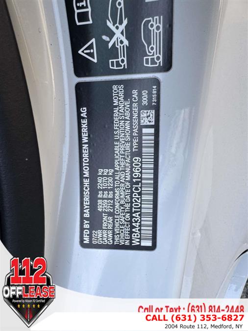 For more information on this 2023 BMW 430i, please call 112 Off Lease at (631) 353-6827 or with the contact form on this page. This vehicle's vin number is WBA43AT02PCL19609 and is recorded as being in stock at 112 Off Lease at 2004 Route 112 in Medford. See all cars from this dealership.