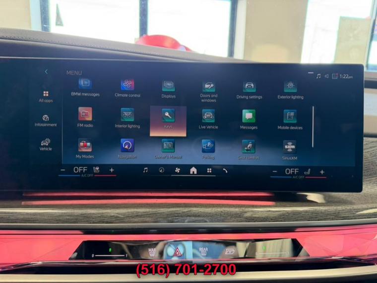 ABS, 4-Wheel Disc Brakes, 8 Cylinder Engine, 8-Speed A/T, A/C, A/T, Active Suspension, Adjustable Steering Wheel, Air Suspension, Security System, All Wheel Drive, Aluminum Wheels, AM/FM Stereo, Transmission w/Dual Shift Mode, Automatic Headlights, Automatic Highbeams, Automatic Parking, Auxiliary Audio Input, Back-Up Camera, Blind Spot Monitor, Brake Assist, Bucket Seats, Child Safety Locks, Climate Control, Cooled Front Seat(s), Cross-Traffic Alert, Cruise Control, Daytime Running Lights, Driver Air Bag, Driver Illuminated Vanity Mirror, Driver Adjustable Lumbar, Driver Monitoring, Driver Vanity Mirror, Multi-Zone A/C, Auto-Dimming Rearview Mirror, Stability Control, Front Collision Mitigation, Floor Mats, Gasoline/Mild Electric Hybrid, Hands-Free Liftgate, HD Radio, Headlights-Auto-Leveling, Heads-Up Display, Heated Front Seat(s), Heated Mirrors, Heated Rear Seat(s), Heated Steering Wheel, Intermittent Wipers, Keyless Entry, Keyless Start, Lane Departure Warning, Lane Keeping Assist, Leather Seats, Leather Steering Wheel, LED Headlights, Lithium Ion Traction Battery, Mirror Memory, MP3 Capability, Navigation System, Telematics, Panoramic Roof, Pass-Through Rear Seat, Passenger Air Bag, Passenger Air Bag Sensor, Passenger Illuminated Visor Mirror, Passenger Adjustable Lumbar, Passenger Vanity Mirror, Power Door Locks, Power Mirror(s), Power Driver Seat, Power Folding Mirrors, Power Liftgate, Power Passenger Seat, Power Steering, Power Windows, Premium Sound System, Rain Sensing Wipers, Rear A/C, Rear Bench Seat, Rear Collision Mitigation, Rear Defrost, Rear Head Air Bag, Rear Parking Aid, Rear Seat Audio Controls, Remote Engine Start, Remote Trunk Release, Requires Subscription, Satellite Radio, Seat Memory, Front Side Air Bag, Front Head Air Bag, Smart Device Integration, Steering Wheel Audio Controls, Generic Sun/Moonroof, Tire Pressure Monitor, Tires - Front Performance, Tires - Rear Performance, Traction Control, Trip Computer, Turbocharged, Universal Garage Door Opener, Variable Speed Intermittent Wipers, Immobilizer, WiFi Hotspot, Bluetooth Connection, Woodgrain Interior Trim, Auto On/Off Projector Beam Led Low/High Beam Auto-Leveling Directionally Adaptive Auto High-Beam Daytime Running Lights Preference Setting Headlamps w/Delay-Off, Black Door Handles, Black Side Windows Trim, Body-Colored Front Bumper w/Black Bumper Insert, Body-Colored Power Heated Side Mirrors w/Driver Auto Dimming and Power Folding, Body-Colored Rear Bumper w/Black Rub Strip/Fascia Accent, Chrome Grille, Cornering Lights, Fixed Glass Panoramic Sky Lounge LED Roof 1st And 2nd Row Sunroof w/Power Sunshade, Fixed Rear Window w/Defroster and Power Blind, Galvanized Steel/Aluminum Panels, Headlights-Automatic Highbeams, LED Brakelights, Light Tinted Glass, Perimeter/Approach Lights, Power Trunk Rear Cargo Access, Soft Close Doors, Speed Sensitive Rain Detecting Variable Intermittent Wipers w/Heated Jets, Tire Mobility Kit, Tires: 255/45R20 Fr & 285/40R20 Rr All-Season -inc: Non run-flat, Wheels: 20" M Aerodynamic Bi-Color Style 907 -inc: 20" x 9.0" front and 20" x 10.5" rear, 1 12V DC Power Outlet, 18-Way Power Driver Seat -inc: Power Recline, Height Adjustment, Cushion Extension, Seatback Side Bolster Support, Fore/Aft Movement, Cushion Tilt, Articulating Upper Backrest and Power 4-Way Lumbar Support, 18-Way Power Passenger Seat -inc: Power Recline, Height Adjustment, Seatback Side Bolster Support, Fore/Aft Movement, Cushion Extension, Cushion Tilt, Articulating Upper Backrest and Power 4-Way Lumbar Support, 2 Seatback Storage Pockets, Air Filtration, Apple CarPlay & Android Auto Compatibility, Bench Front Facing Heated Rear Seat, BMW TeleServices, Cargo Area Concealed Storage, Cargo Features -inc: Tire Mobility Kit, Cargo Space Lights, Carpet Floor Trim and Carpet Trunk Lid/Rear Cargo Door Trim, Connected Package Pro, ConnectedDrive Services, Cruise Control w/Steering Wheel Controls, Day-Night Auto-Dimming Rearview Mirror, Delayed Accessory Power, Digital/Analog Appearance, Driver / Passenger And Rear Door Bins, Driver And Passenger Heated Front Seat, Driver And Passenger Visor Vanity Mirrors w/Driver And Passenger Illumination, Driver Foot Rest, Driver Information Center, Dual Zone Front And Rear Automatic Air Conditioning, Extended Merino Leather Upholstery, Fade-To-Off Interior Lighting, FOB Controls -inc: Keyfob Cargo Access, Keyfob Window Activation and Keyfob Remote Start, Front And Rear Map Lights, Front Center Armrest and Rear Center Armrest w/Pass-Thru w/Storage, Front Cupholder, Front Seats w/Leather Back Material and Power 4-Way Driver Lumbar, Front Ventilated Seats, Full Carpet Floor Covering -inc: Carpet Front And Rear Floor Mats, Full Cloth Headliner, Full Floor Console w/Covered Storage, Mini Overhead Console and 1 12V DC Power Outlet, Garage Door Transmitter, Gauges -inc: Speedometer, Odometer, Engine Coolant Temp, Tachometer, Trip Odometer and Trip Computer, Glass/Metal-Look Gear Shifter Material, Head-Up Display, HVAC -inc: Underseat Ducts, Auxiliary Rear Heater, Headliner/Pillar Ducts and Console Ducts, Illuminated Locking Glove Box, Immobilizer, Interior Lock Disable, Interior Trim -inc: Genuine Wood/Metal-Look Instrument Panel Insert, Piano Black/Metal-Look Door Panel Insert, Genuine Wood/Piano Black Console Insert, Metal-Look Interior Accents and Veganza Leatherette Upholstered Dashboard, Leather Door Trim Insert, Live Cockpit Pro w/Navi, Memory Settings -inc: Driver And Passenger Seats, Door Mirrors, Steering Wheel and Head Restraints, Multi-Functional Seats, Natural Interaction, Outside Temp Gauge, Perimeter Alarm, Personal eSIM 5G, Power 1st Row Windows w/Front And Rear 1-Touch Up/Down, Power Anti-Whiplash w/Tilt Front Head Restraints and Manual Adjustable Rear Head Restraints, Power Door Locks w/Autolock Feature, Power Fuel Flap Locking Type, Power Rear Windows and w/Power 2nd Row Sun Blinds, Power Tilt/Telescoping Steering Column, Proximity Key For Doors And Push Button Start And Sm