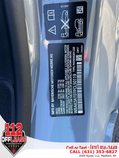 For more information on this 2023 BMW M440i, please call 112 Off Lease at (631) 353-6827 or with the contact form on this page. This vehicle's vin number is WBA63AT07PCL50119 and is recorded as being in stock at 112 Off Lease at 2004 Route 112 in Medford. See all cars from this dealership.