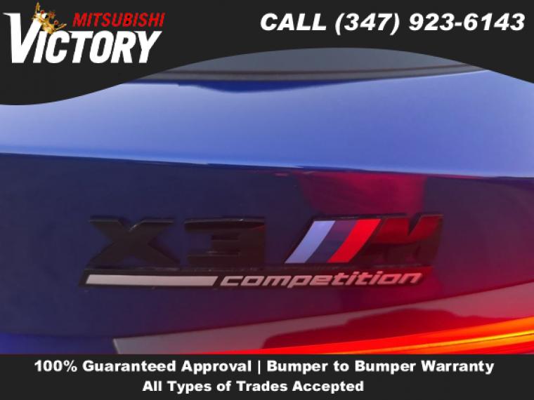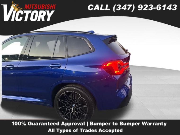 2023 BMW X3 M Marina Bay Blue Metallic 4D Sport Utility Save yourself Time and Money - Fill out a credit application online at victorymitsubishi.com and get pre-APPROVED! Financing available for all types of credit with low monthly payment that will fit you budget. Down Payment low as $599. Same day delivery. View our entire inventory by visiting our virtual showroom at victorymitsubishi.com - Only 2 blocks away from Exit 13 off I-95 or Minutes from exit 7 on the Hutchinson Parkway. While we make every effort to ensure the data listed here is correct, there may be instances where the pricing, options or vehicle features may be listed incorrectly. Dealer cannot be held liable for data that is listed incorrectly. to see more pictures of this vehicle or call us at (347) 923-6143 today to schedule your test drive. please refer to dealer’s website for exact pricing and for any incentives that we may apply! Our address is 4070 Boston Road, Bronx, NY 10475.