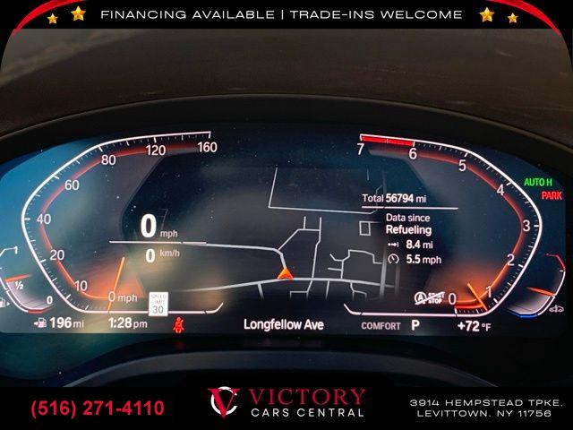 Navigation, Navigation System, Connected Package Pro, 12 Speakers, AM/FM Radio, AM/FM radio: SiriusXM, ConnectedDrive Services, Hi-Fi Sound System, Radio data system, SiriusXM Satellite Radio, Air Conditioning, Automatic temperature control, Front dual zone A/C, Rear air conditioning, Rear window defroster, Memory seat, Power driver seat, Power steering, Power windows, Remote keyless entry, Steering wheel mounted audio controls, Four wheel independent suspension, Speed-sensing steering, Traction control, 4-Wheel Disc Brakes, ABS brakes, Dual front impact airbags, Dual front side impact airbags, Emergency communication system: BMW Assist eCall, Front anti-roll bar, Knee airbag, Low tire pressure warning, Occupant sensing airbag, Overhead airbag, Rear anti-roll bar, Power Liftgate, Brake assist, Electronic Stability Control, Exterior Parking Camera Rear, Auto High-beam Headlights, Delay-off headlights, Fully automatic headlights, Panic alarm, Security system, Speed control, Auto-dimming door mirrors, Bumpers: body-color, Heated door mirrors, Power door mirrors, Spoiler, Turn signal indicator mirrors, Apple CarPlay & Android Auto Compatibility, Auto-dimming Rear-View mirror, BMW Assist eCall, BMW TeleServices, Driver door bin, Driver vanity mirror, Enhanced USB & Bluetooth w/Smartphone Integration, Front reading lights, Garage door transmitter, Genuine wood dashboard insert, Genuine wood door panel insert, Illuminated entry, Outside temperature display, Passenger vanity mirror, Rear reading lights, Rear seat center armrest, Sport steering wheel, Tachometer, Telescoping steering wheel, Tilt steering wheel, Trip computer, WiFi Hotspot, Front Bucket Seats, Front Center Armrest, Perforated SensaTec Upholstery, Power Front Seats, Power passenger seat, Split folding rear seat, Sport Seats, Passenger door bin, Alloy wheels, Wheels: 19" x 7.5" Y-Spoke (Style 693), Rain sensing wipers, Rear window wiper, Speed-Sensitive Wipers, Variably intermittent wipers, 3.385 Axle Ratio