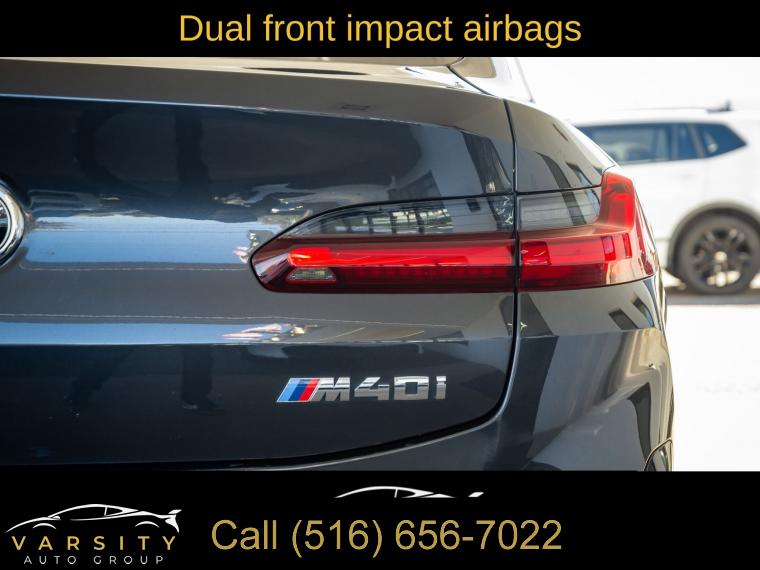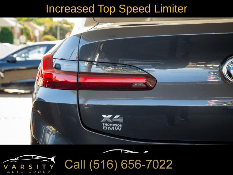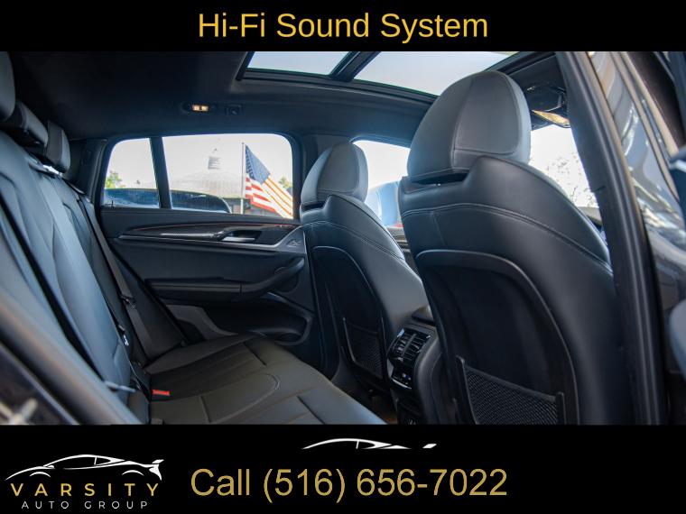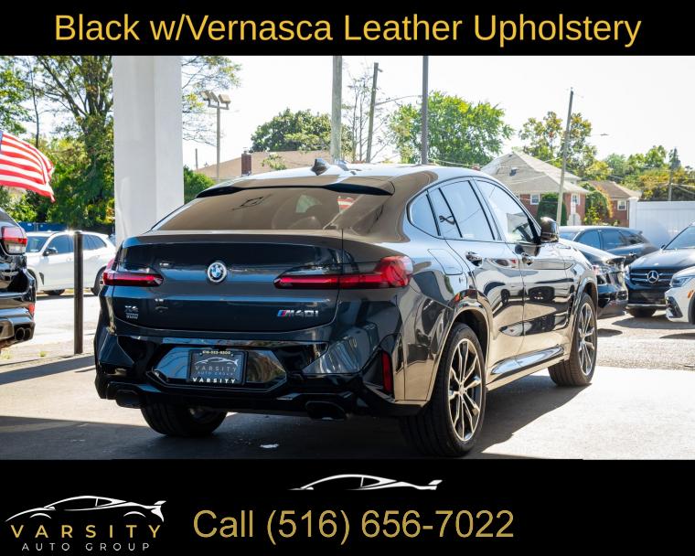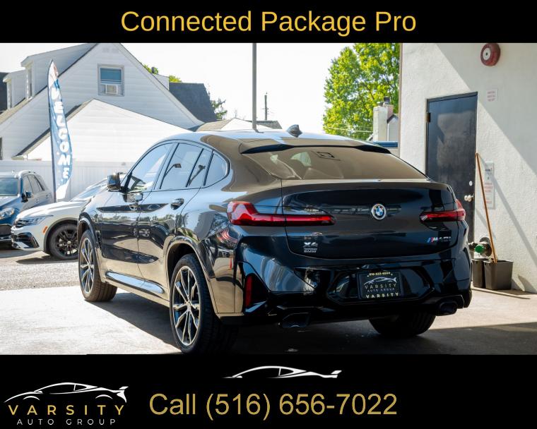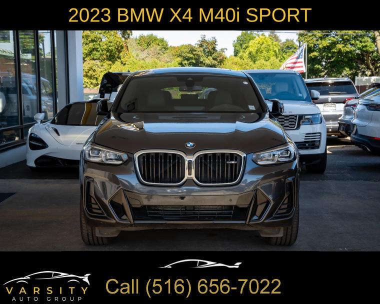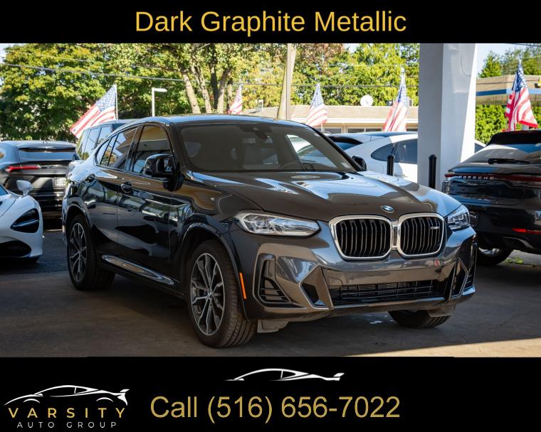 • 2023 BMW X4 M40i SPORT, Dark Graphite Metallic, Black w/Vernasca Leather Upholstery, Premium Package, Connected Package Pro, Apple CarPlay & Android Auto, Driving Assistance Professional Package, Clean CARFAX, 12 Speakers, 3.39 Axle Ratio, 4-Wheel Disc Brakes, ABS brakes, Active Driving Assistant Pro, Adaptive suspension, Air Conditioning, Alloy wheels, AM/FM radio: SiriusXM, Anti-whiplash front head restraints, Apple CarPlay & Android Auto Compatibility, Auto High-beam Headlights, Auto-dimming door mirrors, Auto-dimming Rear-View mirror, Automatic temperature control, BMW Assist eCall, BMW TeleServices, Brake assist, Bumpers: body-color, Carbon Fiber Trim, Connected Package Pro, ConnectedDrive Services, Delay-off headlights, Driver door bin, Driver Lumbar Support, Driver vanity mirror, Driving Assistance Professional Package, Dual front impact airbags, Dual front side impact airbags, Electronic Stability Control, Emergency communication system: BMW Assist eCall, Enhanced USB & Bluetooth w/Smartphone Integration, Extended Traffic Jam Assistant, Exterior Parking Camera Rear, Four wheel independent suspension, Front anti-roll bar, Front Bucket Seats, Front Center Armrest, Front dual zone A/C, Front reading lights, Fully automatic headlights, Garage door transmitter, Head-Up Display, Heated door mirrors, Heated Front Seats, Heated Steering Wheel, Hi-Fi Sound System, Illuminated entry, Increased Top Speed Limiter, Knee airbag, Live Cockpit Pro w/Navi, Low tire pressure warning, Memory seat, Navigation System, Occupant sensing airbag, Outside temperature display, Overhead airbag, Overhead console, Panic alarm, Passenger door bin, Passenger vanity mirror, Perforated SensaTec Upholstery, Power door mirrors, Power driver seat, Power Front Seats, Power Liftgate, Power moonroof: Panorama, Power passenger seat, Power steering, Power windows, Premium Package, Radio data system, Radio: AM/FM Audio System, Rain sensing wipers, Rear air conditioning, Rear anti-roll bar, Rear reading lights, Rear seat center armrest, Rear window defroster, Remote keyless entry, Security system, SiriusXM Satellite Radio, Speed control, Speed-sensing steering, Speed-Sensitive Wipers, Split folding rear seat, Sport Seats, Sport steering wheel, Steering wheel mounted audio controls, Tachometer, Telescoping steering wheel, Tilt steering wheel, Traction control, Trip computer, Turn signal indicator mirrors, Variably intermittent wipers, Wheels: 20" x 8.0" Fr & 20" x 9.5" Rr (Style 699M), Wheels: 20" x 8.0" Fr/20" x 9.5" Rr (Style 699M), WiFi Hotspot. Dark Graphite Metallic 2023 BMW X4 M40i AWD 8-Speed Automatic Sport 3.0L I6 Turbocharged DOHC 24V LEV3-ULEV70 21/26 City/Highway MPG