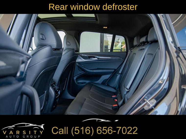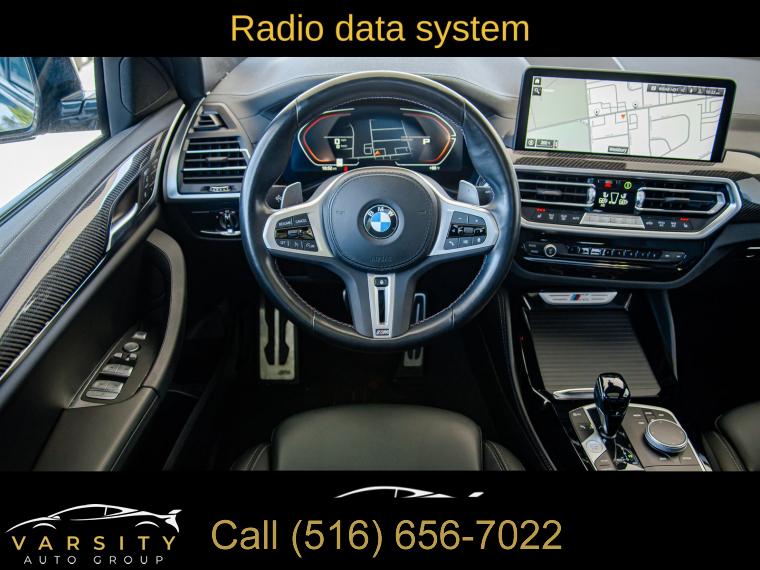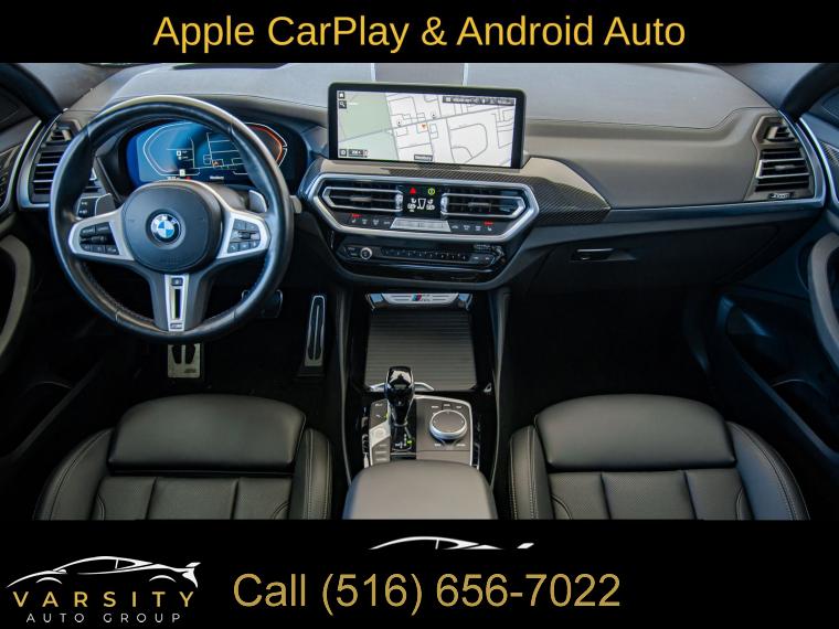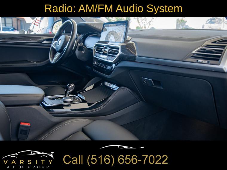 • Navigation System, Connected Package Pro, Driving Assistance Professional Package, Premium Package, 12 Speakers, AM/FM radio: SiriusXM, ConnectedDrive Services, Hi-Fi Sound System, Radio data system, Radio: AM/FM Audio System, SiriusXM Satellite Radio, Air Conditioning, Automatic temperature control, Front dual zone A/C, Rear air conditioning, Rear window defroster, Head-Up Display, Memory seat, Power driver seat, Power steering, Power windows, Remote keyless entry, Steering wheel mounted audio controls, Adaptive suspension, Four wheel independent suspension, Speed-sensing steering, Traction control, 4-Wheel Disc Brakes, ABS brakes, Anti-whiplash front head restraints, Dual front impact airbags, Dual front side impact airbags, Emergency communication system: BMW Assist eCall, Front anti-roll bar, Increased Top Speed Limiter, Knee airbag, Low tire pressure warning, Occupant sensing airbag, Overhead airbag, Rear anti-roll bar, Power moonroof: Panorama, Power Liftgate, Brake assist, Electronic Stability Control, Exterior Parking Camera Rear, Auto High-beam Headlights, Delay-off headlights, Fully automatic headlights, Panic alarm, Security system, Active Driving Assistant Pro, Extended Traffic Jam Assistant, Speed control, Auto-dimming door mirrors, Bumpers: body-color, Heated door mirrors, Power door mirrors, Turn signal indicator mirrors, Apple CarPlay & Android Auto Compatibility, Auto-dimming Rear-View mirror, BMW Assist eCall, BMW TeleServices, Carbon Fiber Trim, Driver door bin, Driver vanity mirror, Enhanced USB & Bluetooth w/Smartphone Integration, Front reading lights, Garage door transmitter, Heated Steering Wheel, Illuminated entry, Live Cockpit Pro w/Navi, Outside temperature display, Overhead console, Passenger vanity mirror, Rear reading lights, Rear seat center armrest, Sport steering wheel, Tachometer, Telescoping steering wheel, Tilt steering wheel, Trip computer, WiFi Hotspot, Driver Lumbar Support, Front Bucket Seats, Front Center Armrest, Heated Front Seats, Perforated SensaTec Upholstery, Power Front Seats, Power passenger seat, Split folding rear seat, Sport Seats, Passenger door bin, Alloy wheels, Wheels: 20" x 8.0" Fr & 20" x 9.5" Rr (Style 699M), Wheels: 20" x 8.0" Fr/20" x 9.5" Rr (Style 699M), Rain sensing wipers, Speed-Sensitive Wipers, Variably intermittent wipers, 3.39 Axle Ratio, 2023 BMW X4 M40i SPORT, Dark Graphite Metallic, Black w/Vernasca Leather Upholstery, Apple CarPlay & Android Auto, Clean CARFAX