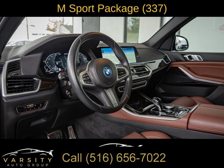 Navigation System, Connected Package Pro, M Sport Package, M Sport Package (337), 10 Speakers, AM/FM radio: SiriusXM with 360L, AM/FM Stereo, Enhanced USB & Bluetooth w/Smartphone Integration, Hi-Fi Sound System, Radio data system, SiriusXM Satellite Radio, Air Conditioning, Automatic temperature control, Front dual zone A/C, Rear window defroster, Head restraints memory, Lumbar Support, Memory seat, Power driver seat, Power steering, Power windows, Remote keyless entry, Steering wheel mounted audio controls, Auto-leveling suspension, Four wheel independent suspension, Speed-sensing steering, Traction control, 4-Wheel Disc Brakes, ABS brakes, Dual front impact airbags, Dual front side impact airbags, Emergency communication system: BMW Assist eCall, Front anti-roll bar, Increased Top Speed Limiter, Knee airbag, Low tire pressure warning, Occupant sensing airbag, Overhead airbag, Power adjustable front head restraints, Rear anti-roll bar, Power moonroof, Aerodynamic Kit, Brake assist, Electronic Stability Control, Exterior Parking Camera Rear, Auto High-beam Headlights, Delay-off headlights, Fully automatic headlights, Panic alarm, Security system, Speed control, Auto-dimming door mirrors, Bumpers: body-color, Heated door mirrors, Power door mirrors, Shadowline Exterior Trim, Spoiler, Turn signal indicator mirrors, Apple CarPlay & Android Auto Compatibility, Auto tilt-away steering wheel, Auto-dimming Rear-View mirror, BMW Assist eCall, BMW TeleServices, Compass, Driver door bin, Driver vanity mirror, Front reading lights, Garage door transmitter, Genuine wood console insert, Genuine wood dashboard insert, Genuine wood door panel insert, Illuminated entry, Leather Shift Knob, Leather steering wheel, M Steering Wheel, Outside temperature display, Passenger vanity mirror, Rear reading lights, Rear seat center armrest, Sport steering wheel, Tachometer, Telescoping steering wheel, Tilt steering wheel, Trip computer, Driver Lumbar Support Only (DISC), Front Bucket Seats, Front Center Armrest, Heated Front Seats, Heated front seats, Power Front Seats, Power passenger seat, Sensafin Upholstery, Split folding rear seat, Sport Seats, High-Gloss Shadowline Roof Rails, Passenger door bin, Alloy wheels, Wheels: 20" x 9" M Star-Spoke Bi-Color, Wheels: 21" x 9.5" Fr & 21" x 10.5" Rr M Y-Spoke, Rain sensing wipers, Rear window wiper, Speed-Sensitive Wipers, Variably intermittent wipers, 3.636 Axle Ratio, The Price you See, is the Price You Pay!!!, BMW X5 xDrive45e, Plug-In Hybrid, Carbon Black Metallic, Coffee Sensafin interior, One Owner, Clean CARFAX