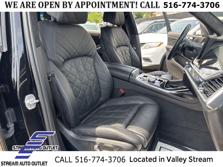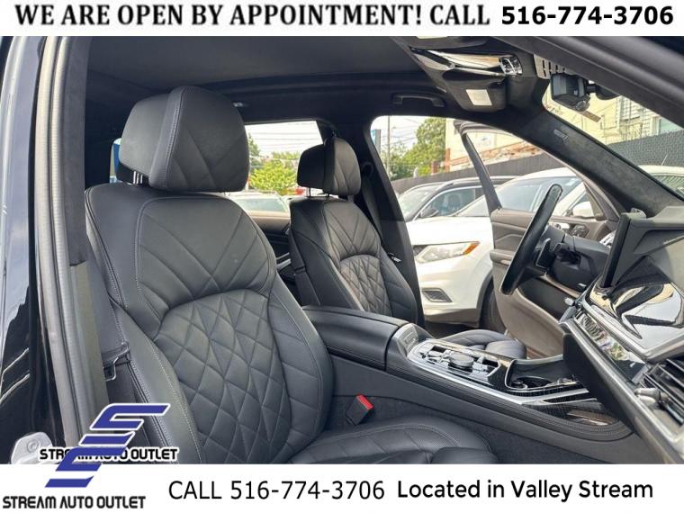 * NYS INSPECTION INCLUDED *, * FULL INTERIOR / EXTERIOR DETAIL *, * BACK UP CAMERA *, * NAVIGATION SYSTEM *, * BLUETOOTH *, * SUNROOF / MOONROOF*, * LIMITED NYS LEMON LAW WARRANTY INCLUDED *, *FRESH OIL CHANGE *, * 150 MULTI POINT INSPECTION *, APPLE CAR PLAY/ANDROID AUTO, X7 xDrive40i, 4D Sport Utility, 3.0L I6 DOHC 24V, 8-Speed Automatic Sport, AWD, Black Sapphire Metallic, Black w/Sensafin Upholstery, 2nd Row Captain's Chairs, 5-Zone Automatic Climate Control, Aerodynamic Kit, Anthracite Alcantara Headliner, Climate Comfort Package, Connected Package Pro, Drive Recorder, Front & Rear Heated Seats, Front Ventilated Seats, Gesture Control, harman/kardon Surround Sound System, M Sport Brakes w/Blue Calipers, M Sport Package, M Sport Package (337), M Steering Wheel, Navigation system: BMW Maps Navigation, Parking Assistance Package, Parking Assistant Professional, Premium Package, Rear Electric Side Window Shades, Shadowline Exterior Trim, Soft-Close Automatic Doors, Surround View w/3D View, Wheels: 21" x 9.5" Double-Spoke Bi-Color Orbit Grey, Without Lines Designation Outside.